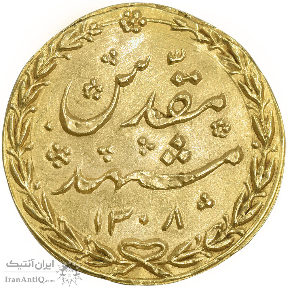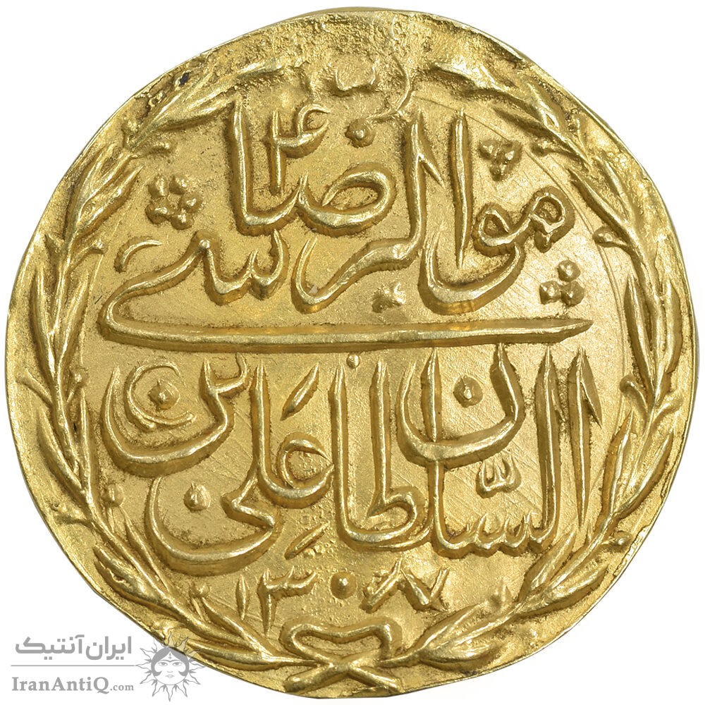 سکه طلا پولکی امام رضا (ع) 1308 - ضرب مشهد - AU - ناصرالدین شاه