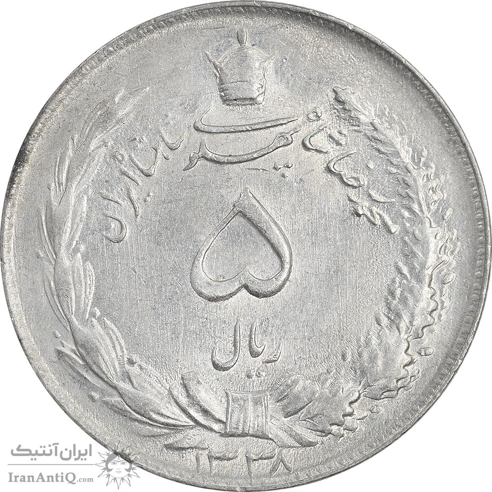 سکه 5 ریال 1338 ضخیم - MS61 - محمد رضا شاه