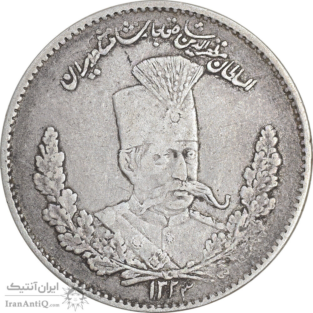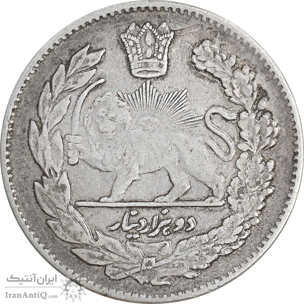 سکه 2000 دینار 1323 تصویری - ارور مکرر پشت سکه - EF40 - مظفرالدین شاه