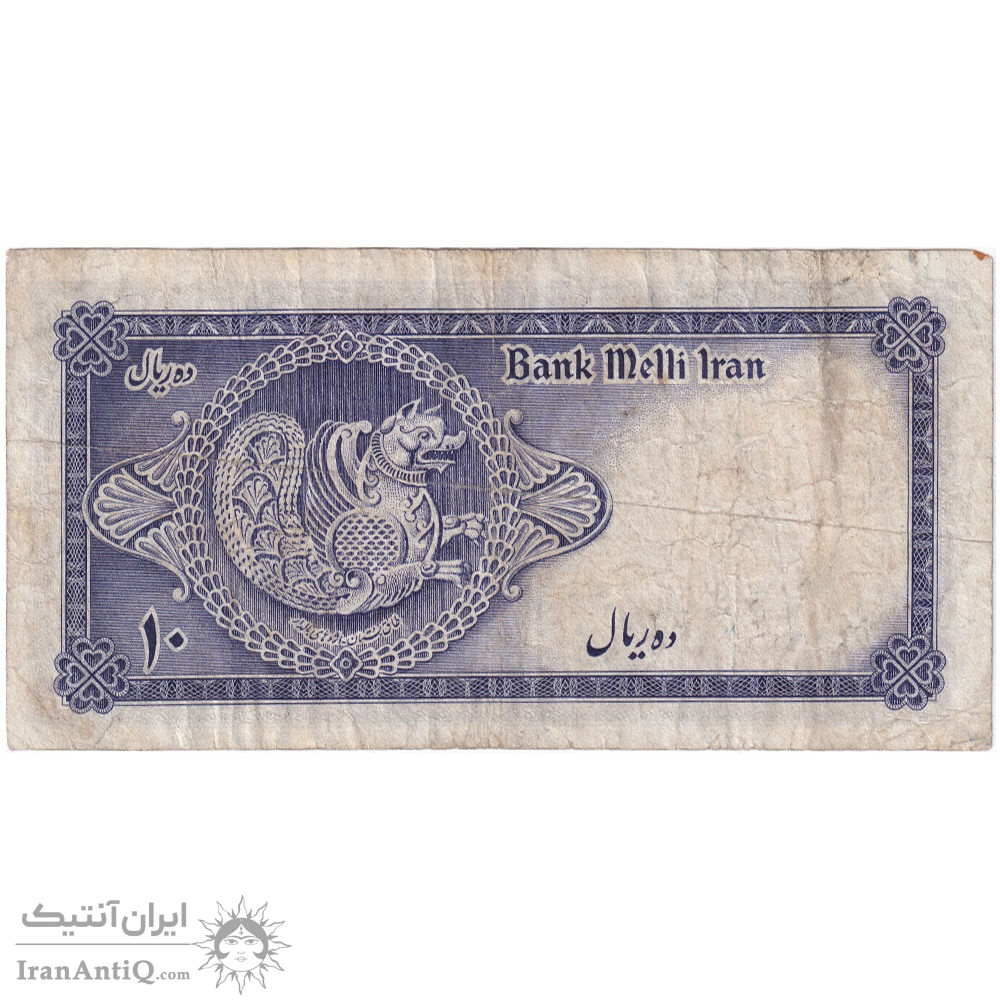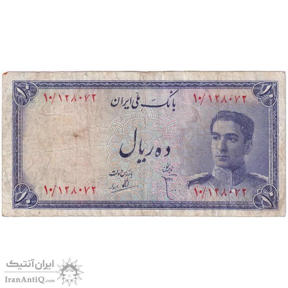 اسکناس 10 ریال سری سوم - تک - F12 - محمد رضا شاه