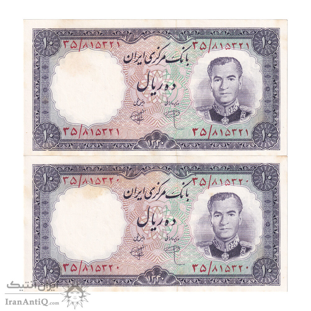 اسکناس 10 ریال 1340 - جفت - UNC63 - محمد رضا شاه