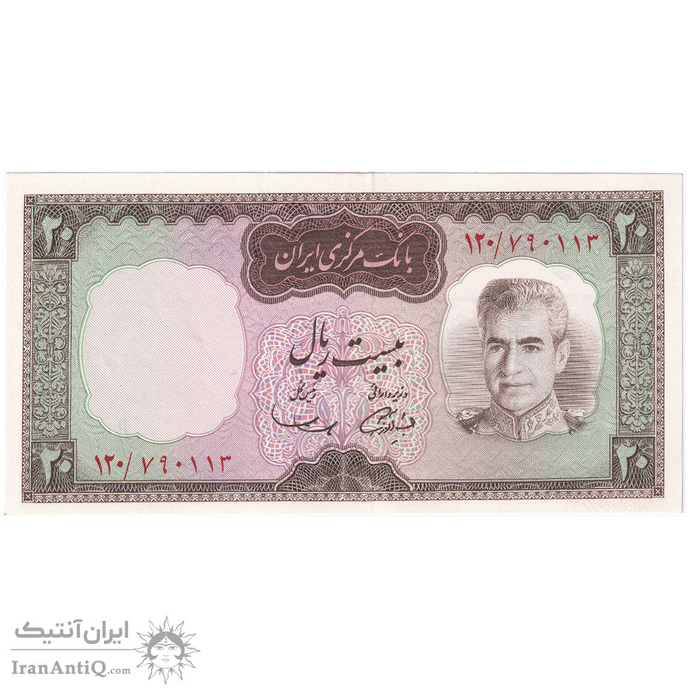 اسکناس 20 ریال (آموزگار - سمیعی) - تک - UNC64 - محمد رضا شاه