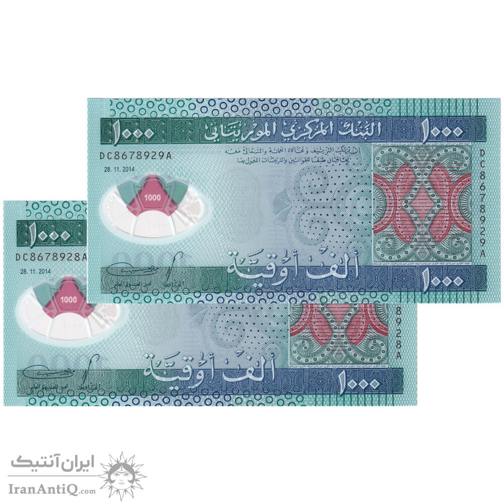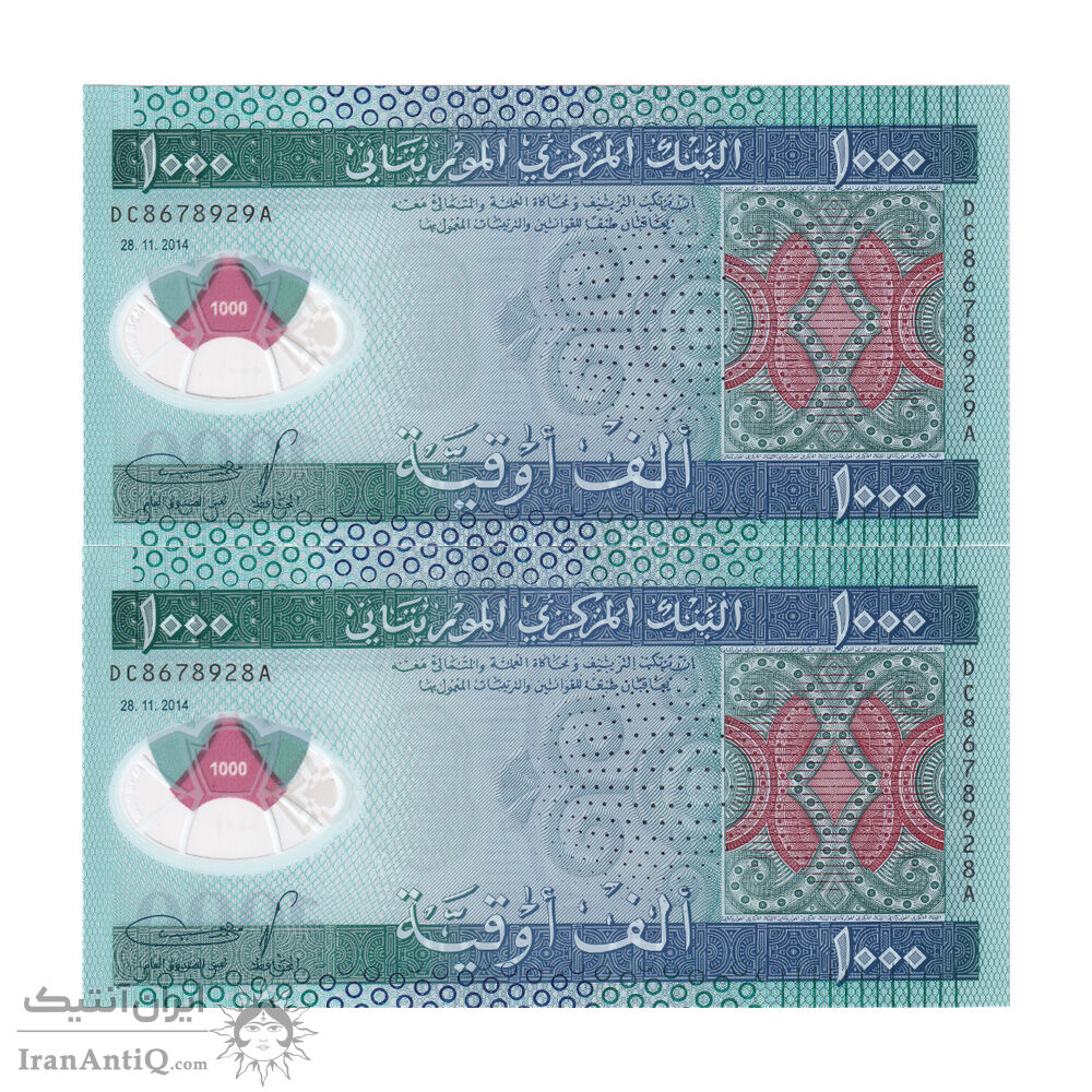 اسکناس 1000 اوقیه 2014 جمهوری اسلامی - جفت - UNC65 - موریتانی