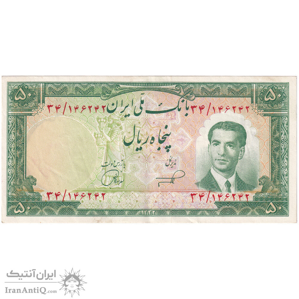 mohammad reza shah 50 rials 1332 iran banknote - AU55