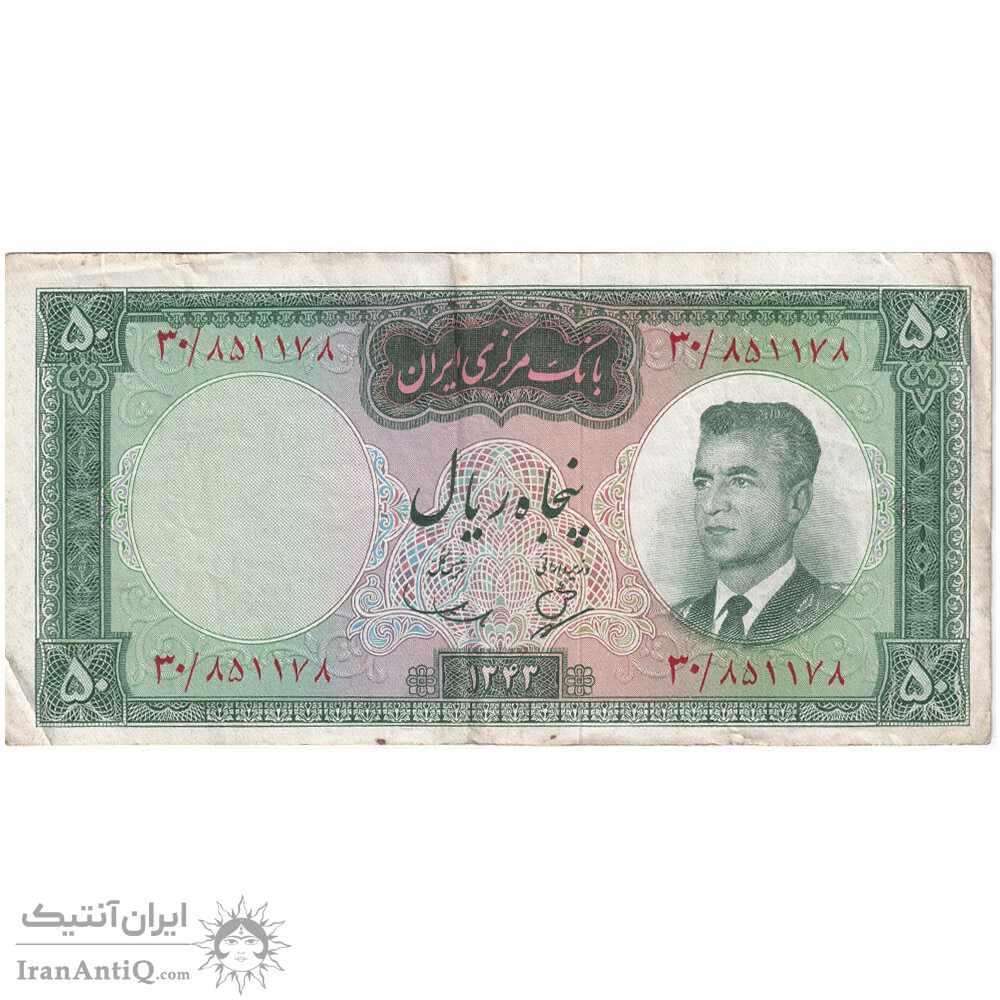 mohammad reza shah 50 rials 1343 iran banknote - EF40