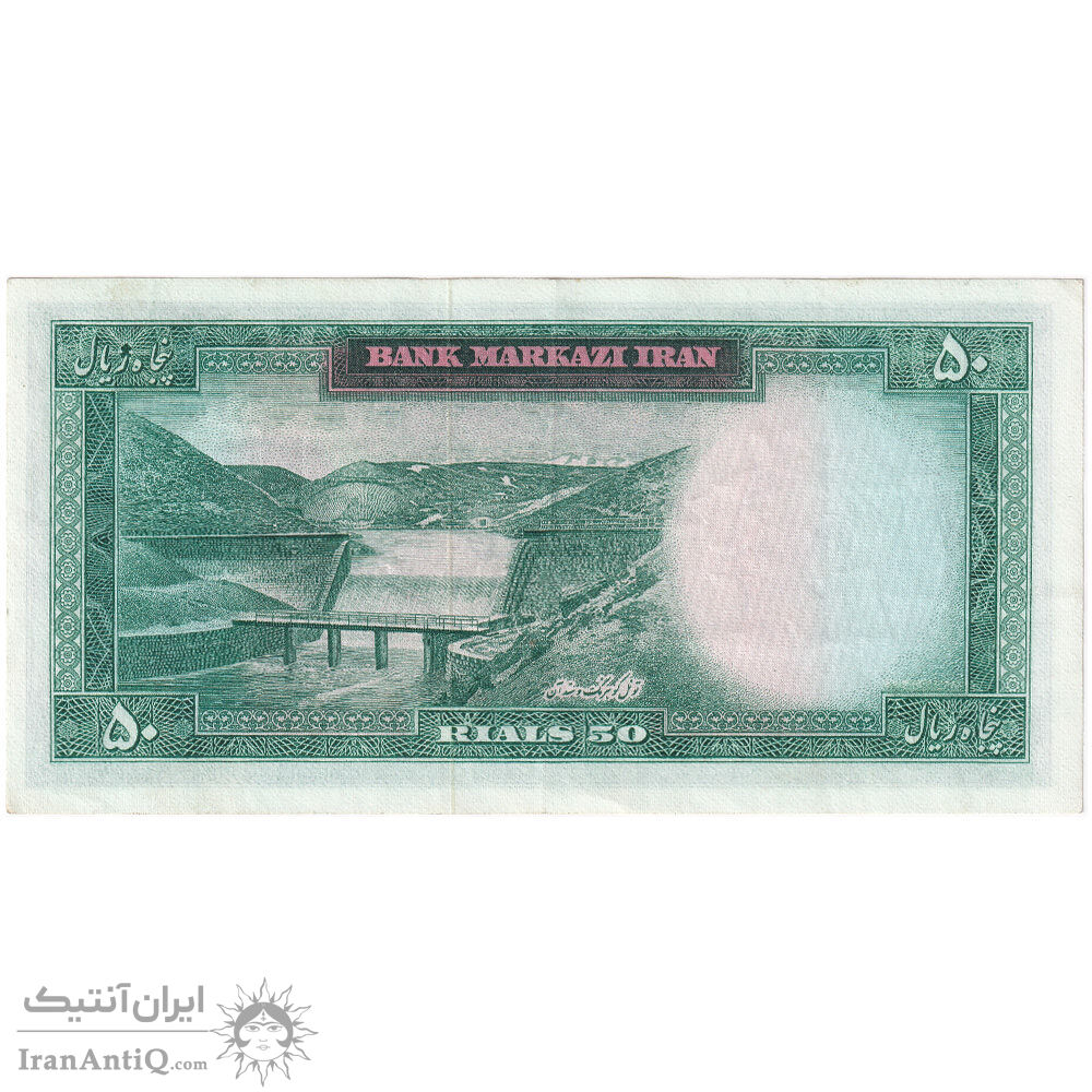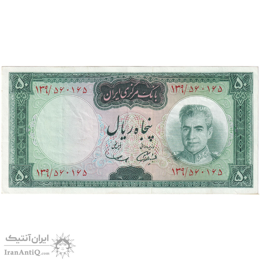 اسکناس 50 ریال (آموزگار - سمیعی) - تک - AU50 - محمد رضا شاه