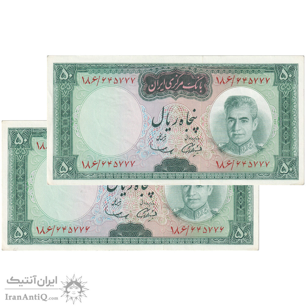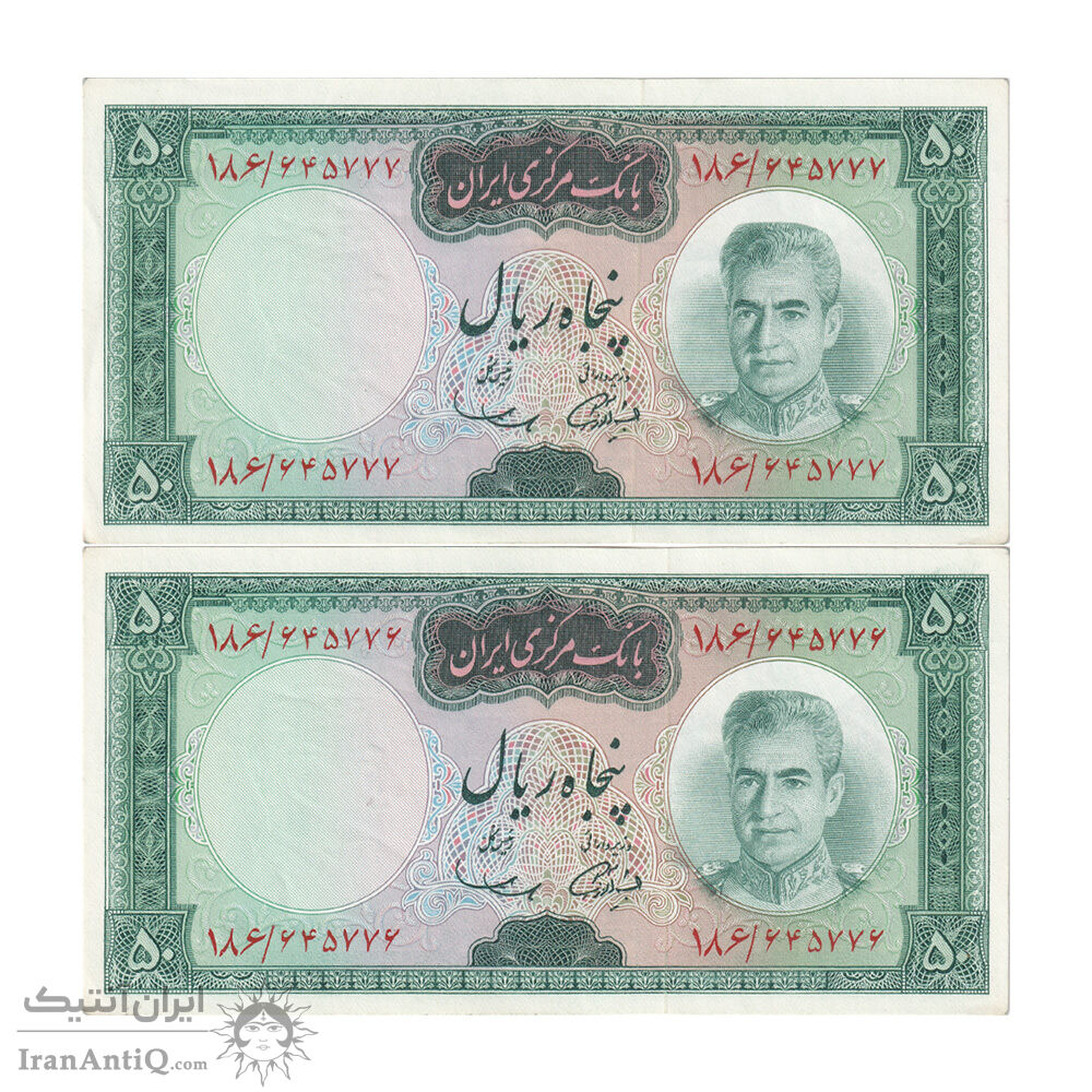 اسکناس 50 ریال (آموزگار - سمیعی) - جفت - AU58 - محمد رضا شاه