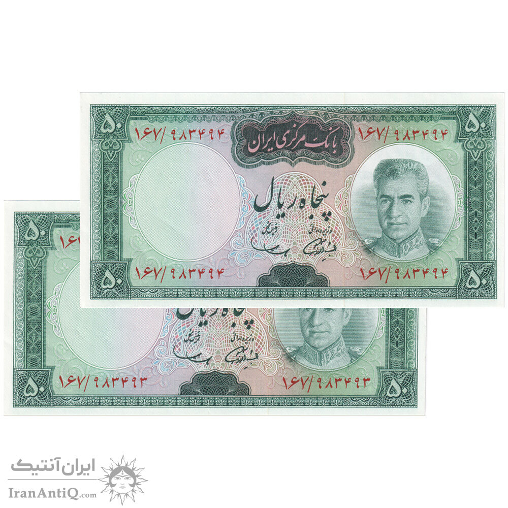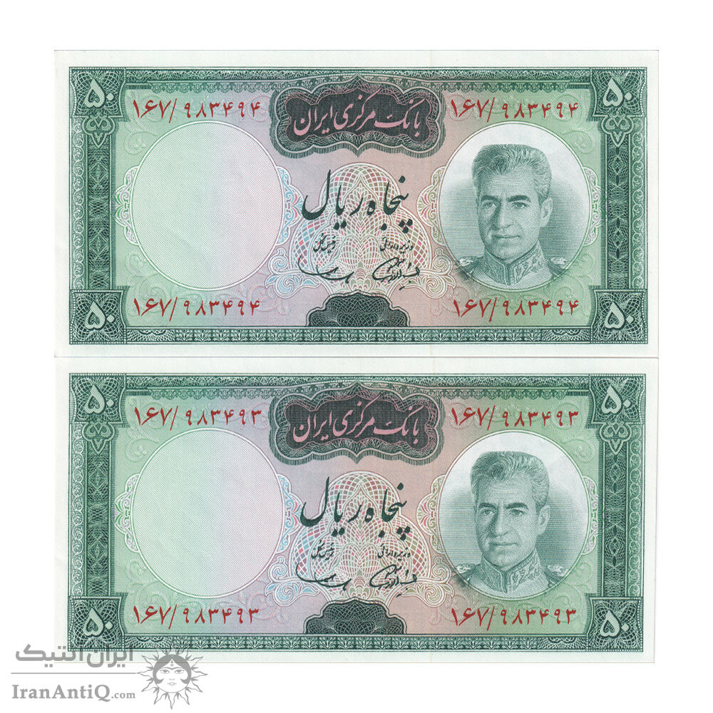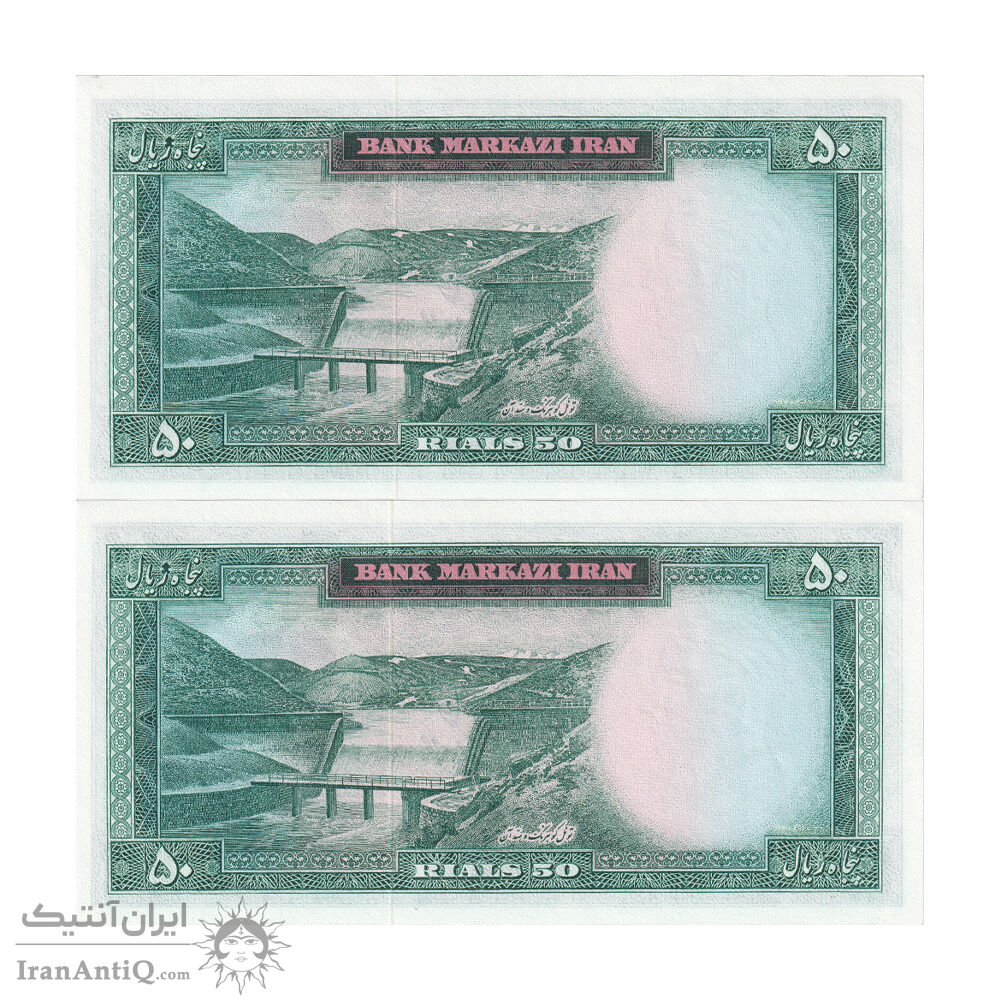 اسکناس 50 ریال (آموزگار - سمیعی) - جفت - UNC62 - محمد رضا شاه