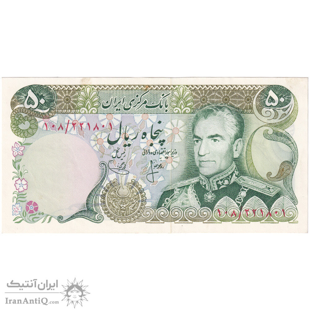 اسکناس 50 ریال (انصاری - یگانه) - تک - UNC63 - محمد رضا شاه