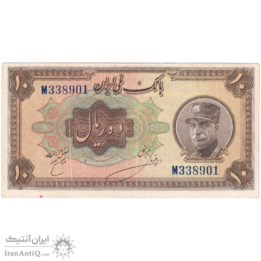 اسکناس 10 ریال کلاه بزرگ (خسروی - هژیر) - تک - VF35 - رضا شاه