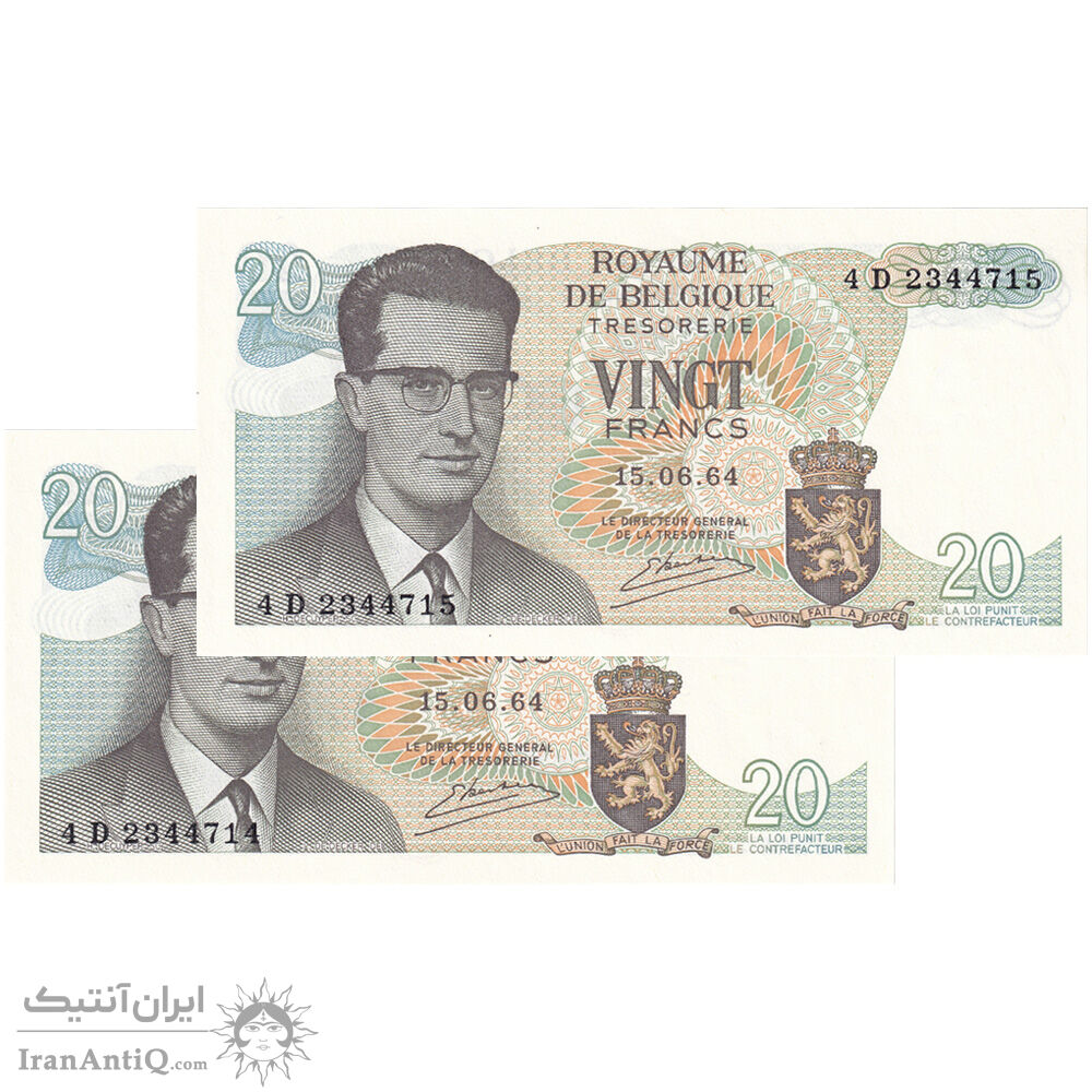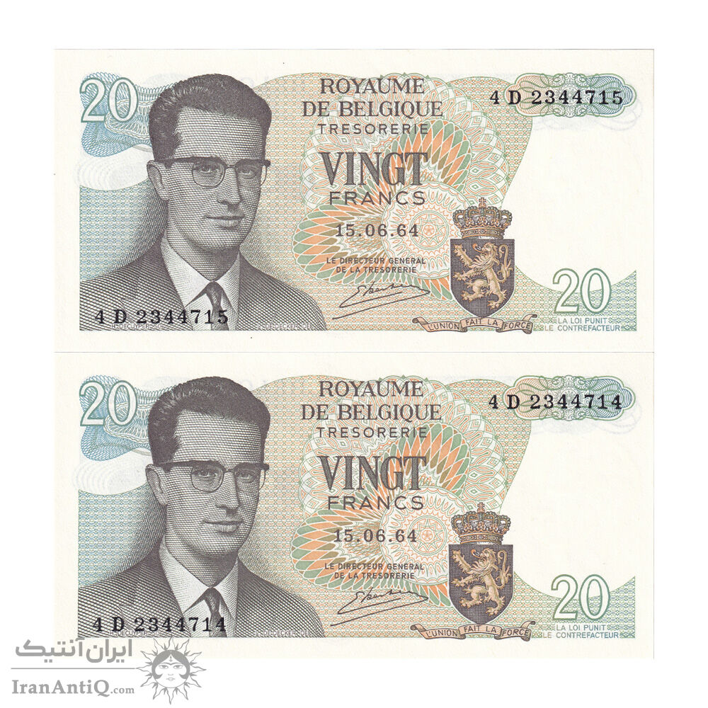 اسکناس 20 فرانک 1964 بودئون یکم - جفت - UNC64 - بلژیک