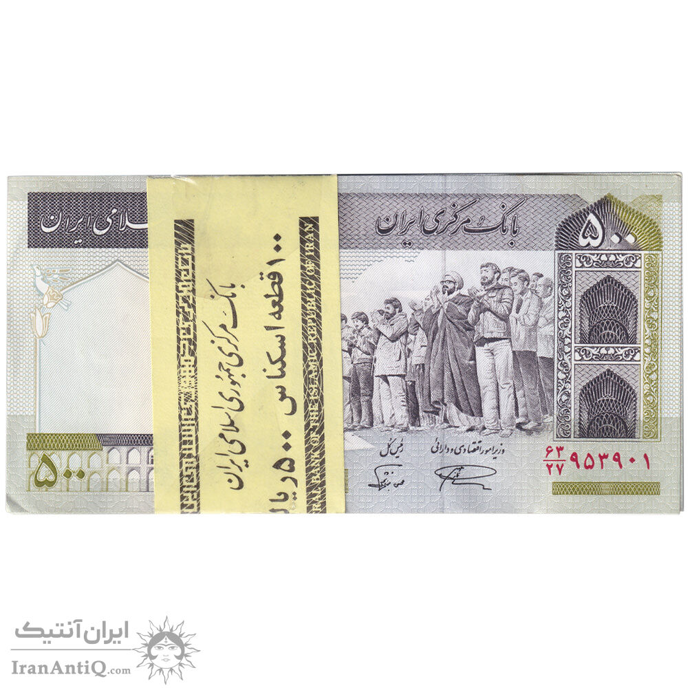 بسته اسکناس 500 ریال (نمازی - نوربخش) - تیپ دو - نخ نستعلیق - UNC - جمهوری اسلامی