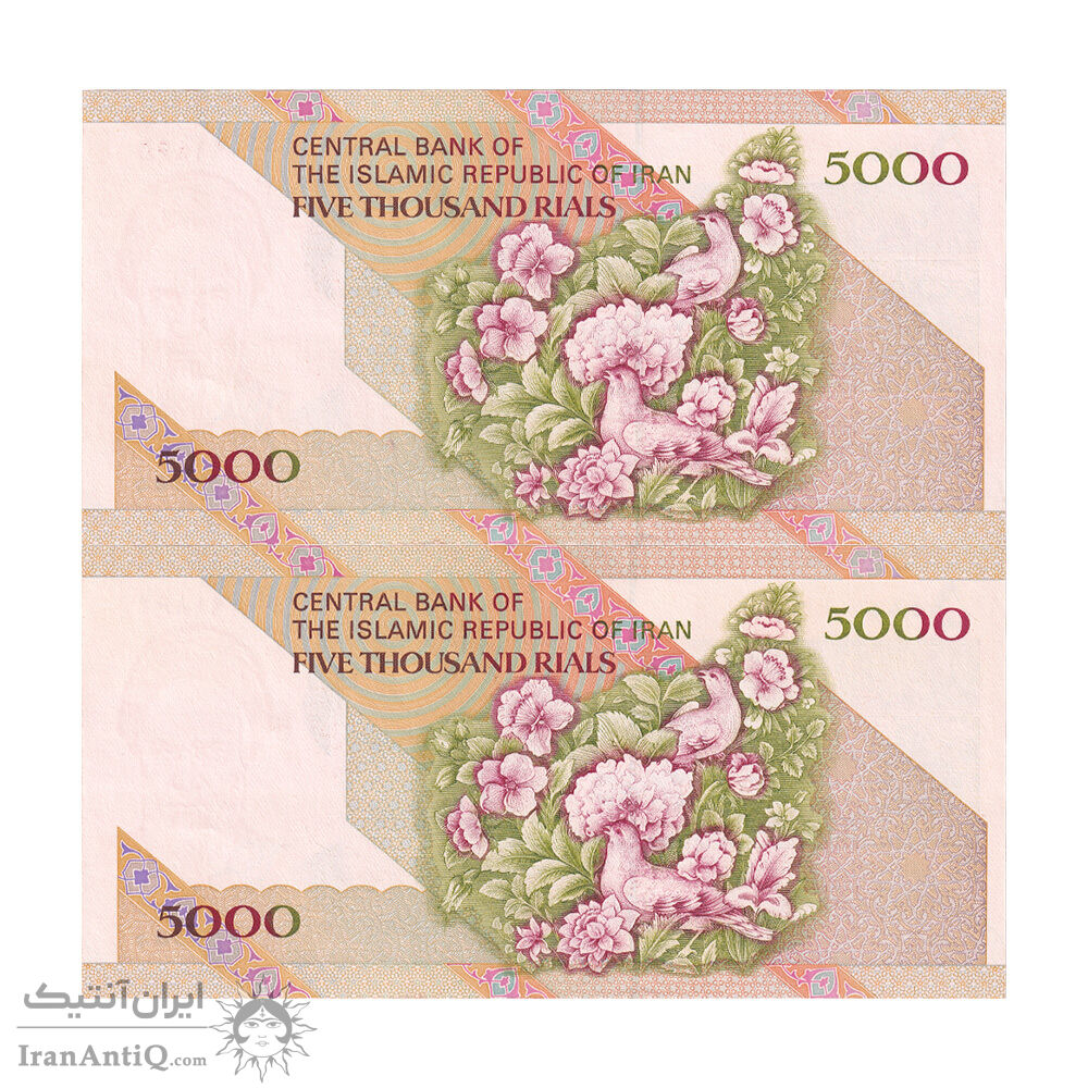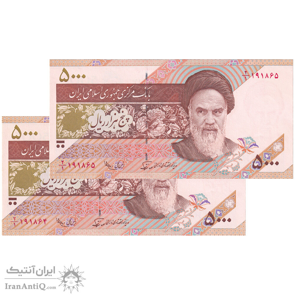 اسکناس 5000 ریال امام (نوربخش - عادلی) - جفت - AU58 - جمهوری اسلامی