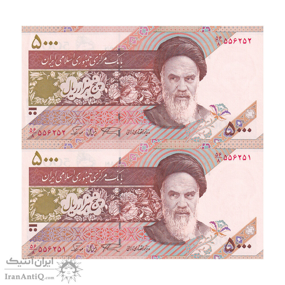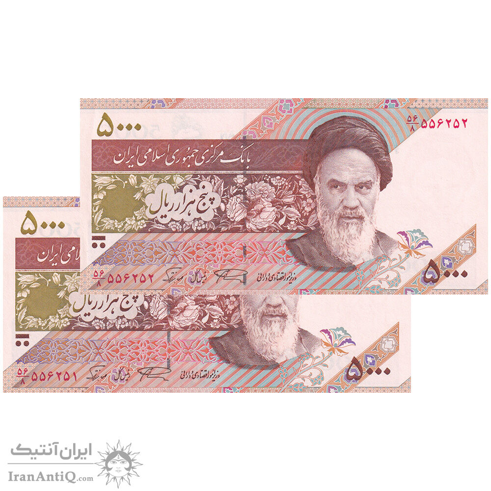 اسکناس 5000 ریال امام (نمازی - نوربخش) فیلیگران نوع 6 - جفت - UNC63 - جمهوری اسلامی
