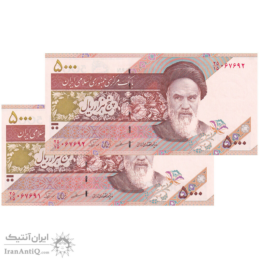 اسکناس 5000 ریال امام (مظاهری - نوربخش) - جفت - UNC64 - جمهوری اسلامی