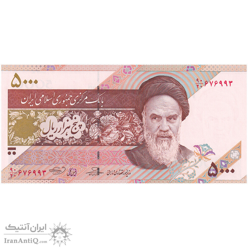 اسکناس 5000 ریال امام (حسینی - بهمنی) کاسه بشقاب - تک - UNC - جمهوری اسلامی