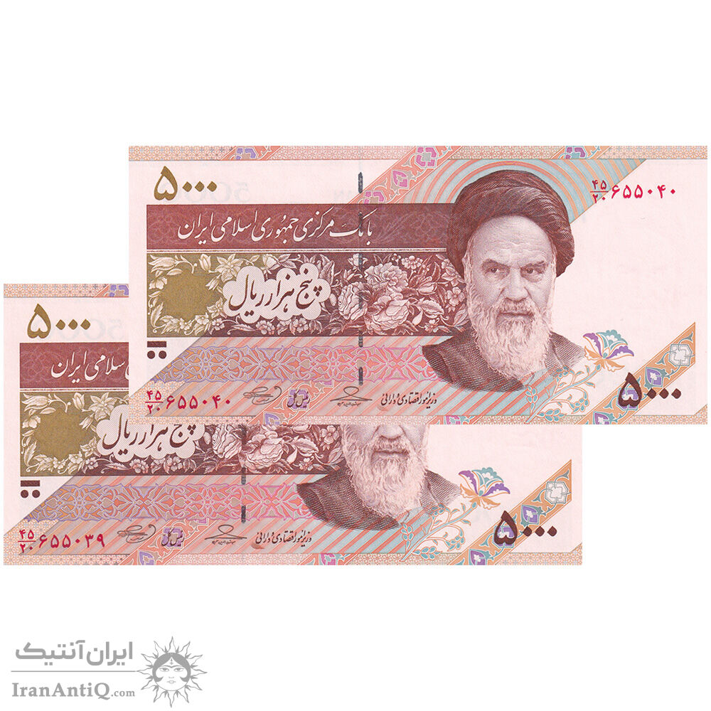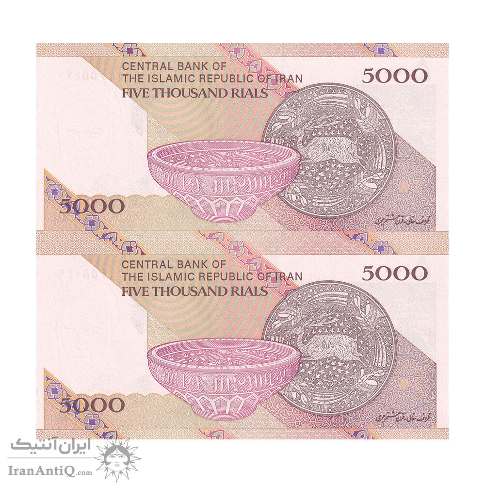 اسکناس 5000 ریال امام (حسینی - بهمنی) کاسه بشقاب - جفت - UNC64 - جمهوری اسلامی