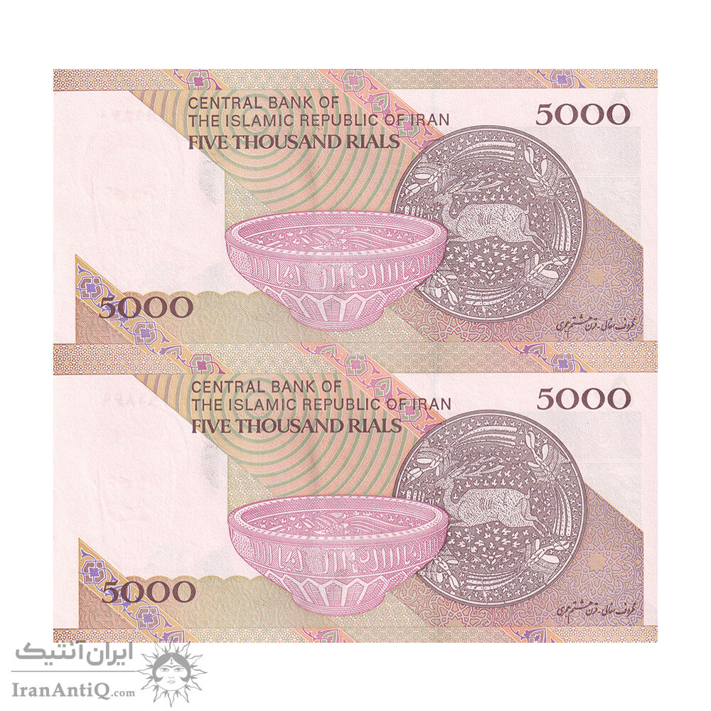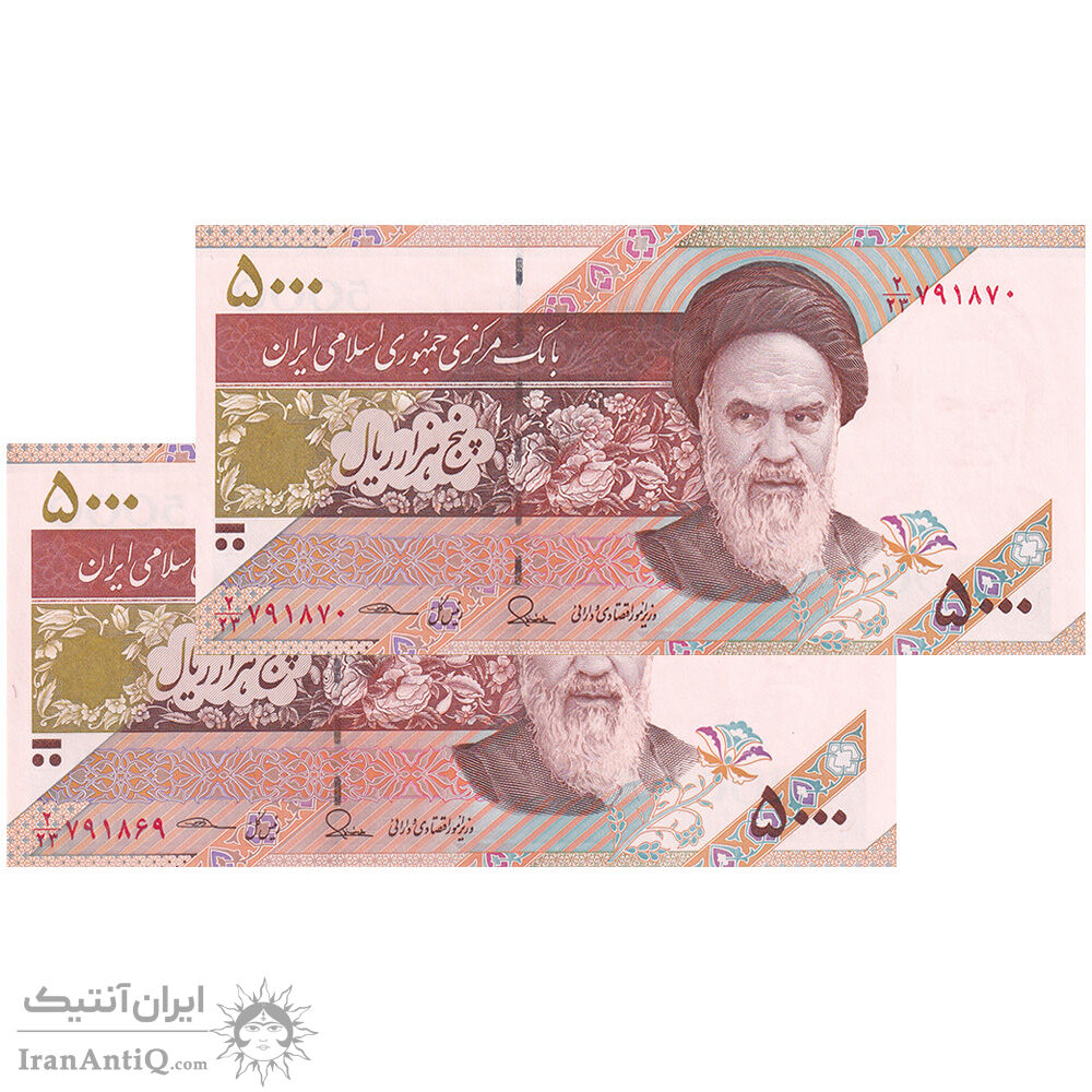 اسکناس 5000 ریال امام (طیب نیا - سیف) نخ 5000 - جفت - UNC63 - جمهوری اسلامی