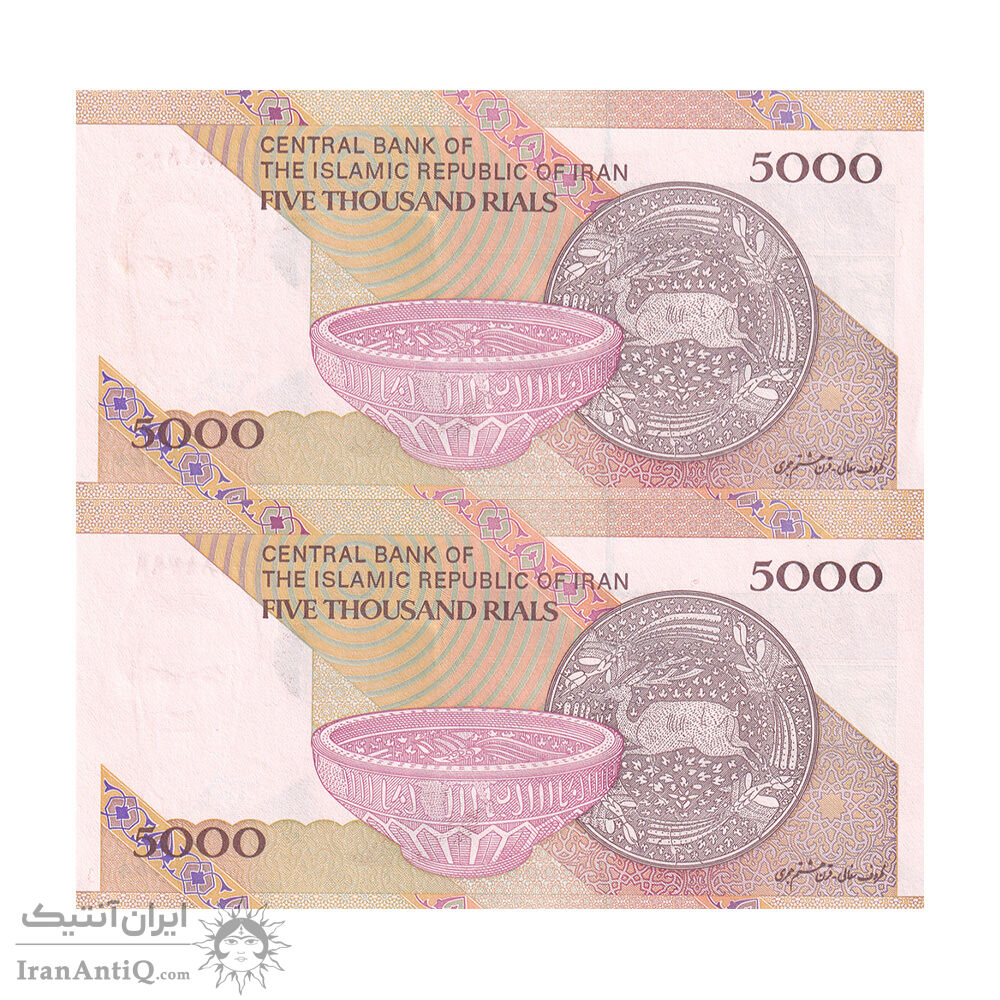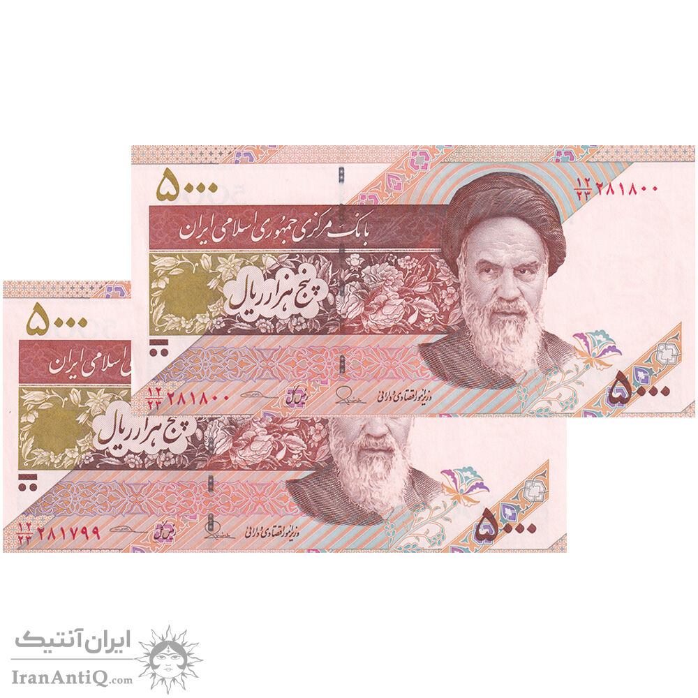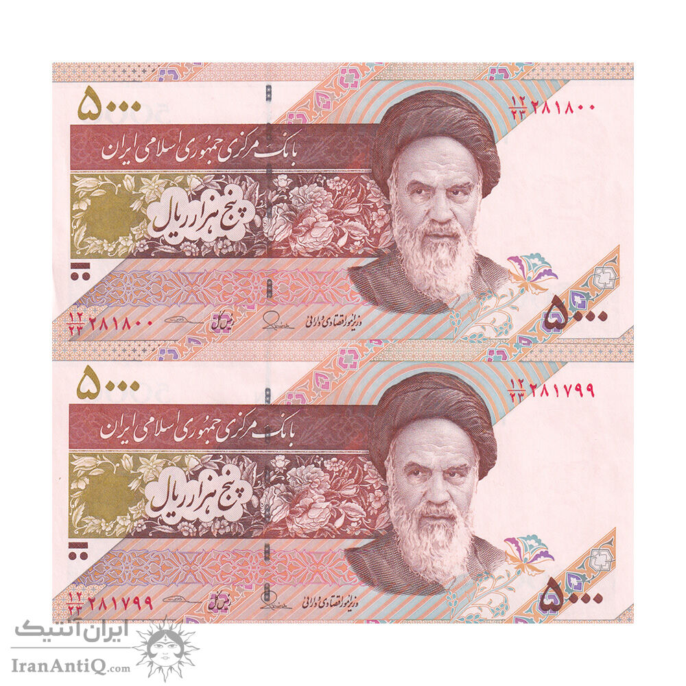 اسکناس 5000 ریال امام (طیب نیا - سیف) - نوار آرم بانک مرکزی - جفت - UNC64 - جمهوری اسلامی