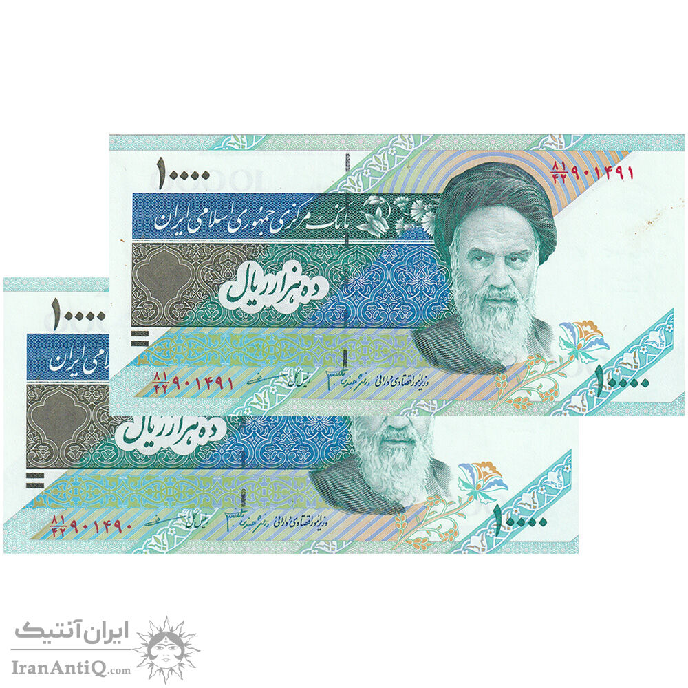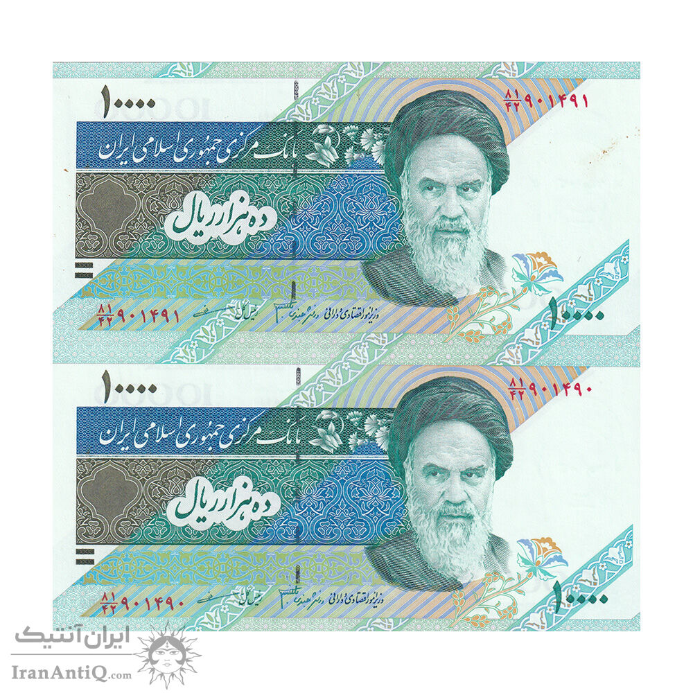اسکناس 10000 ریال (جعفری - مظاهری) امام - جفت - UNC62 - جمهوری اسلامی