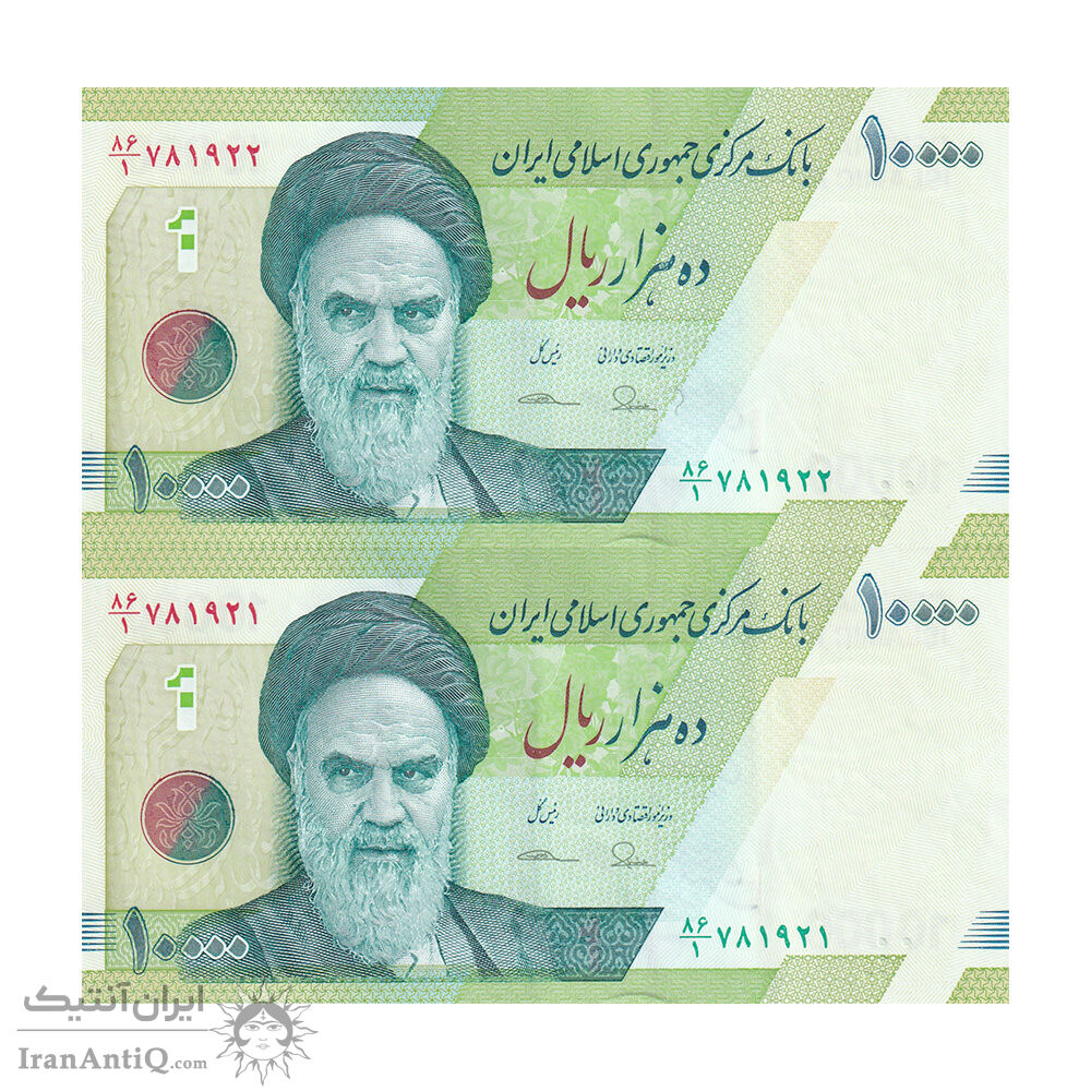 اسکناس 10000 ریال (طیب نیا - سیف) سری 27 - جفت - AU58 - جمهوری اسلامی
