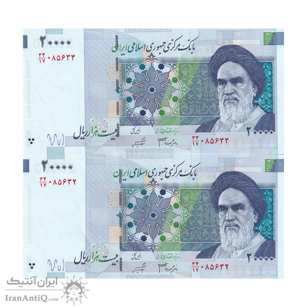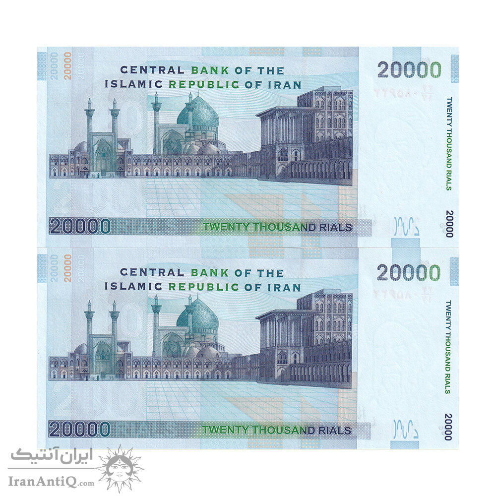 اسکناس 20000 ریال (جعفری - شیبانی) فیلیگران 8 - جفت - UNC63 - جمهوری اسلامی