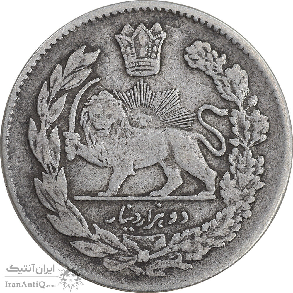 سکه 2000 دینار 1323 تصویری - EF40 - مظفرالدین شاه
