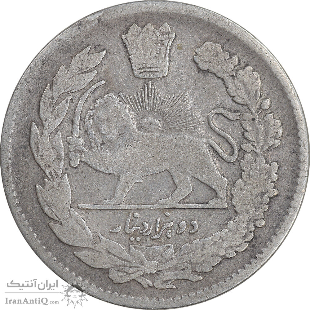 سکه 2000 دینار 1323 تصویری - F - مظفرالدین شاه