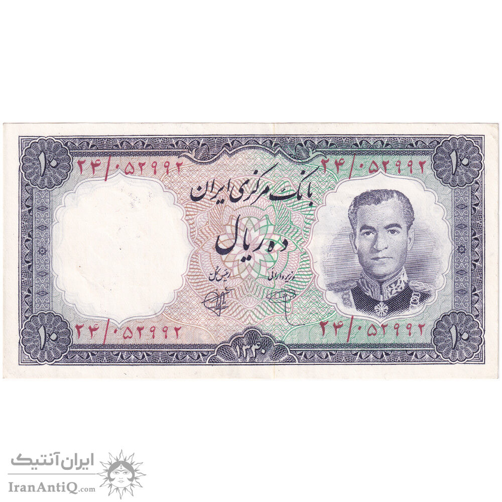 اسکناس 10 ریال 1340 - تک - AU55 - محمد رضا شاه