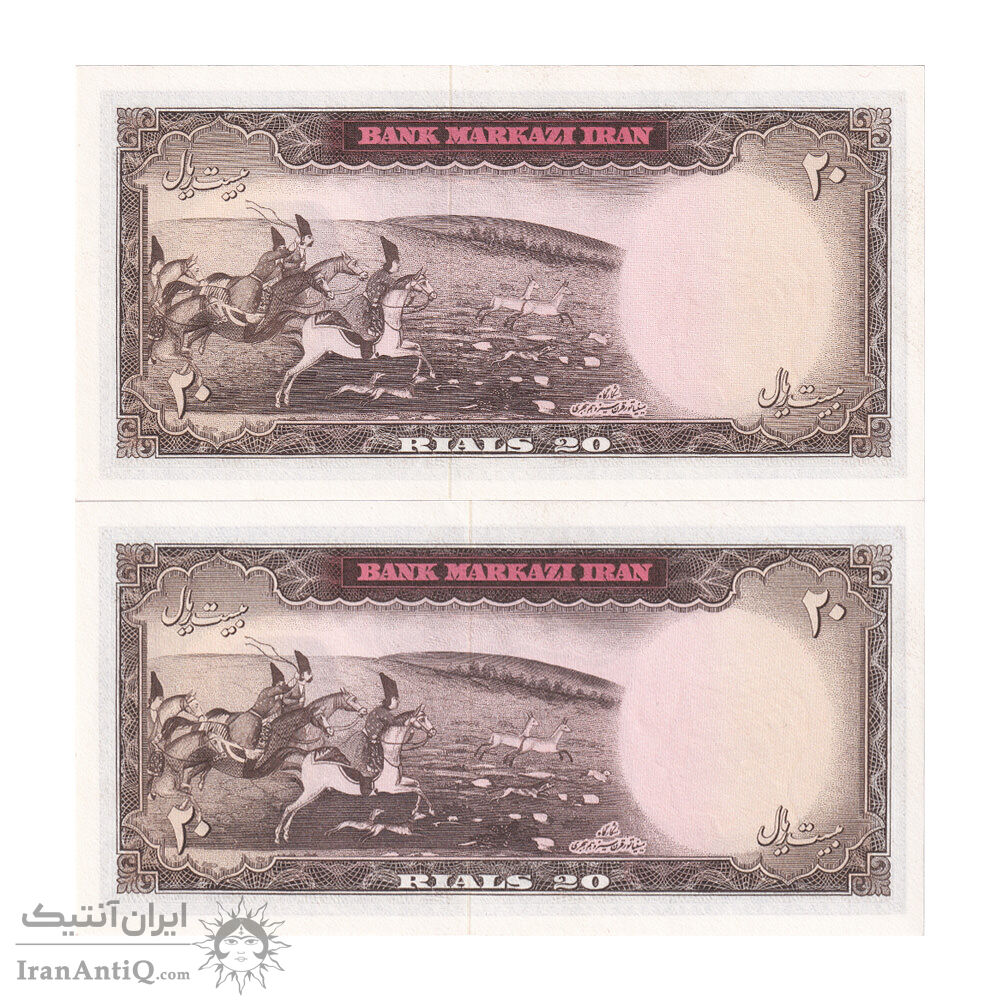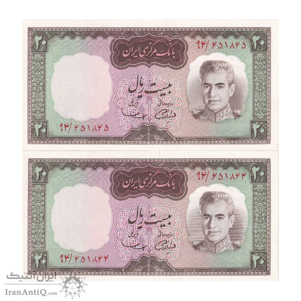 اسکناس 20 ریال (آموزگار - سمیعی) - جفت - UNC64 - محمد رضا شاه