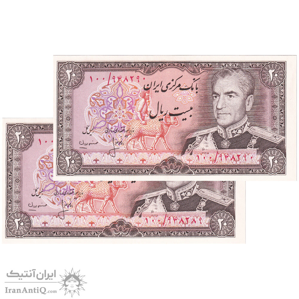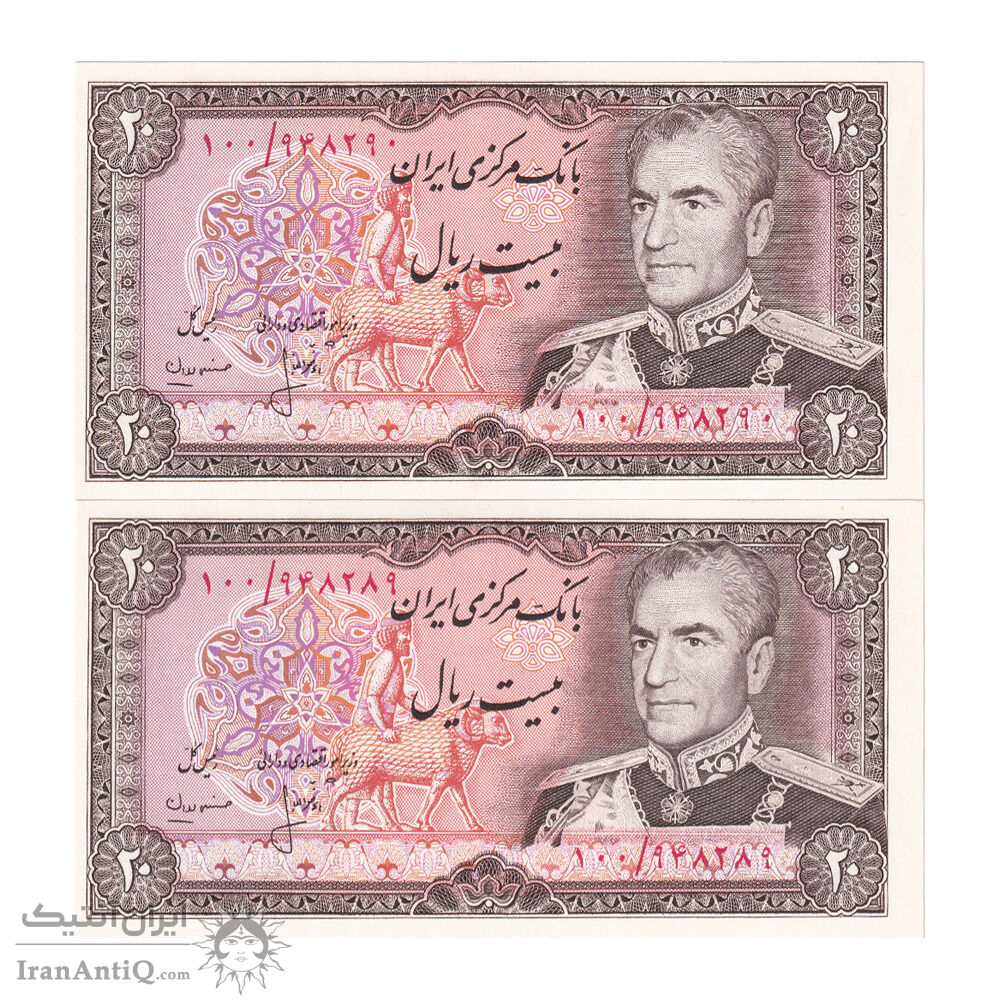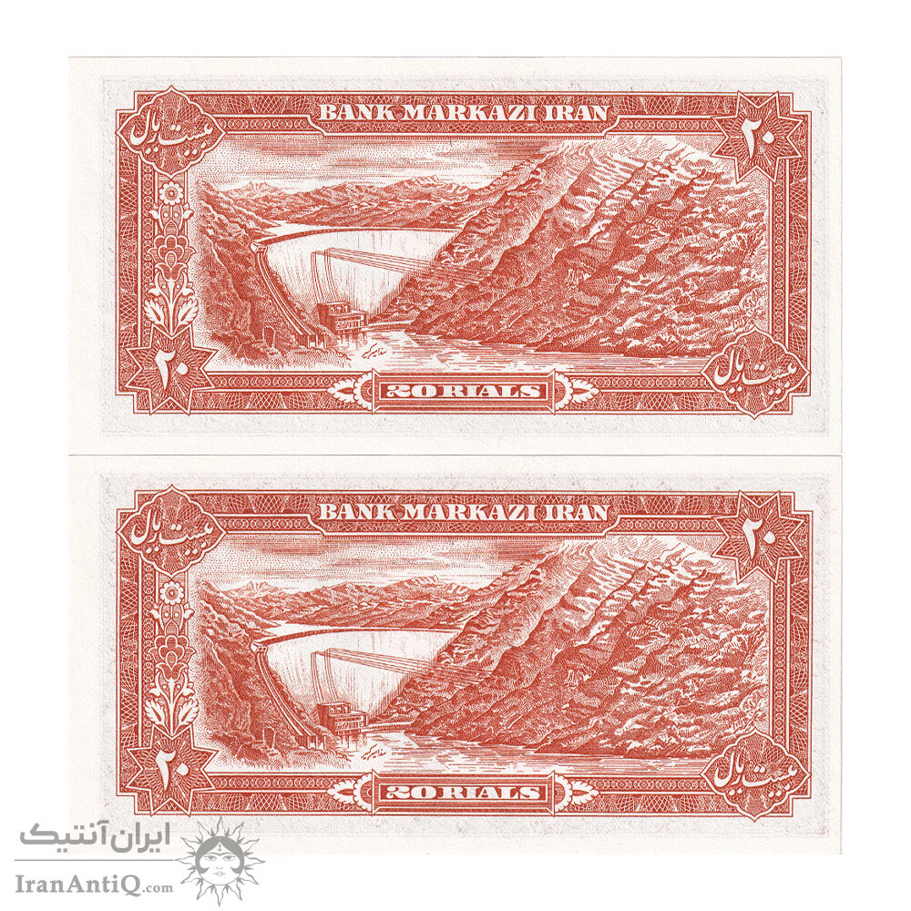 اسکناس 20 ریال (انصاری - مهران) ریال باز - جفت - UNC63 - محمد رضا شاه