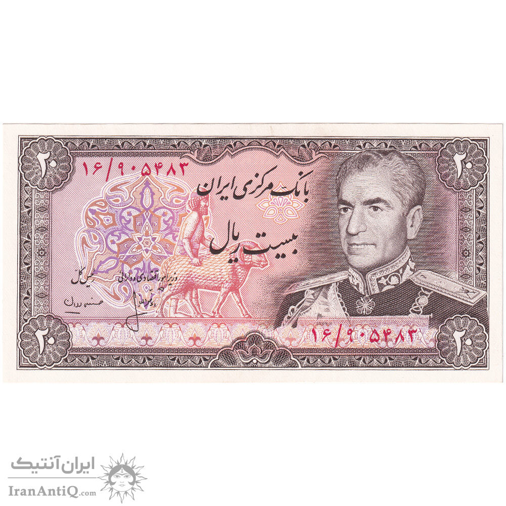 اسکناس 20 ریال (انصاری - مهران) ریال بسته - تک - UNC64 - محمد رضا شاه