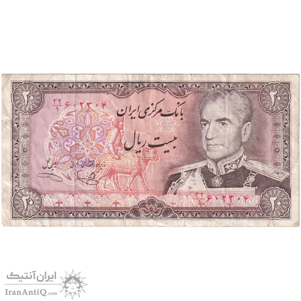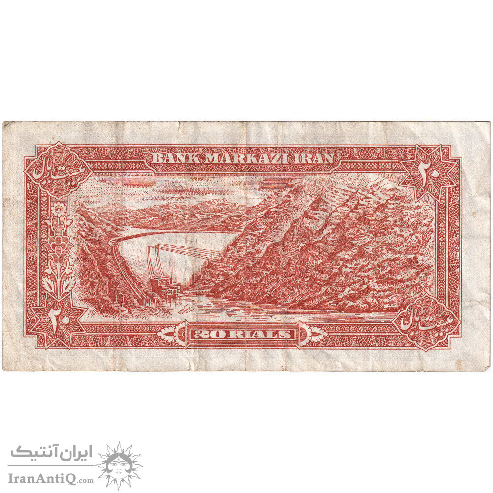 اسکناس 20 ریال (یگانه - خوش کیش) - تک - VF35 - محمد رضا شاه