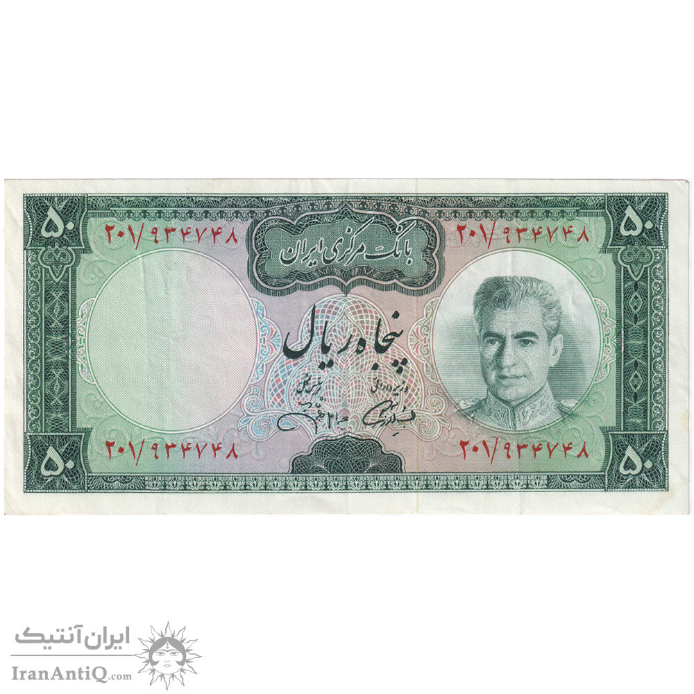 اسکناس 50 ریال (آموزگار - جهانشاهی) - تک - EF45 - محمد رضا شاه