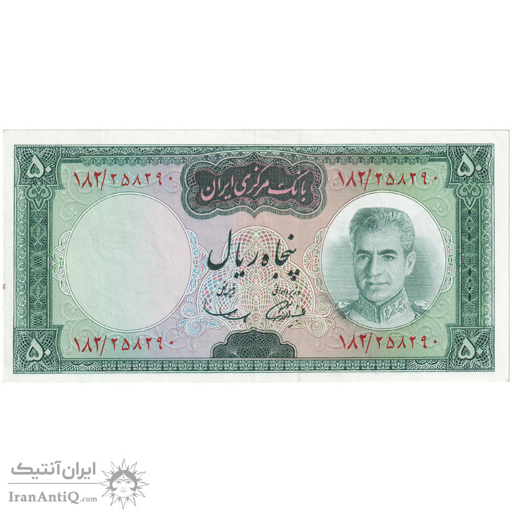 mohammad reza shah 50 rials (amuzegar - samiee) iran banknote - AU55