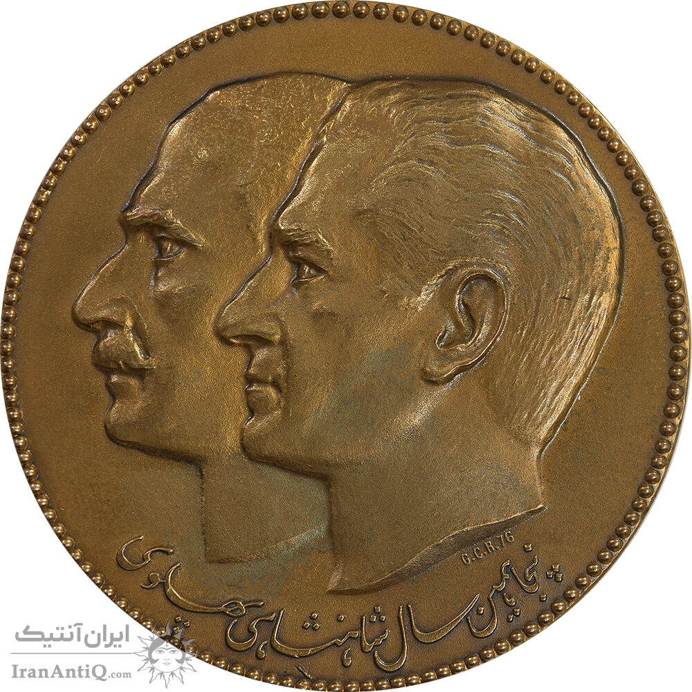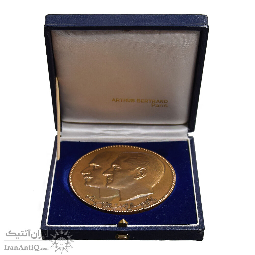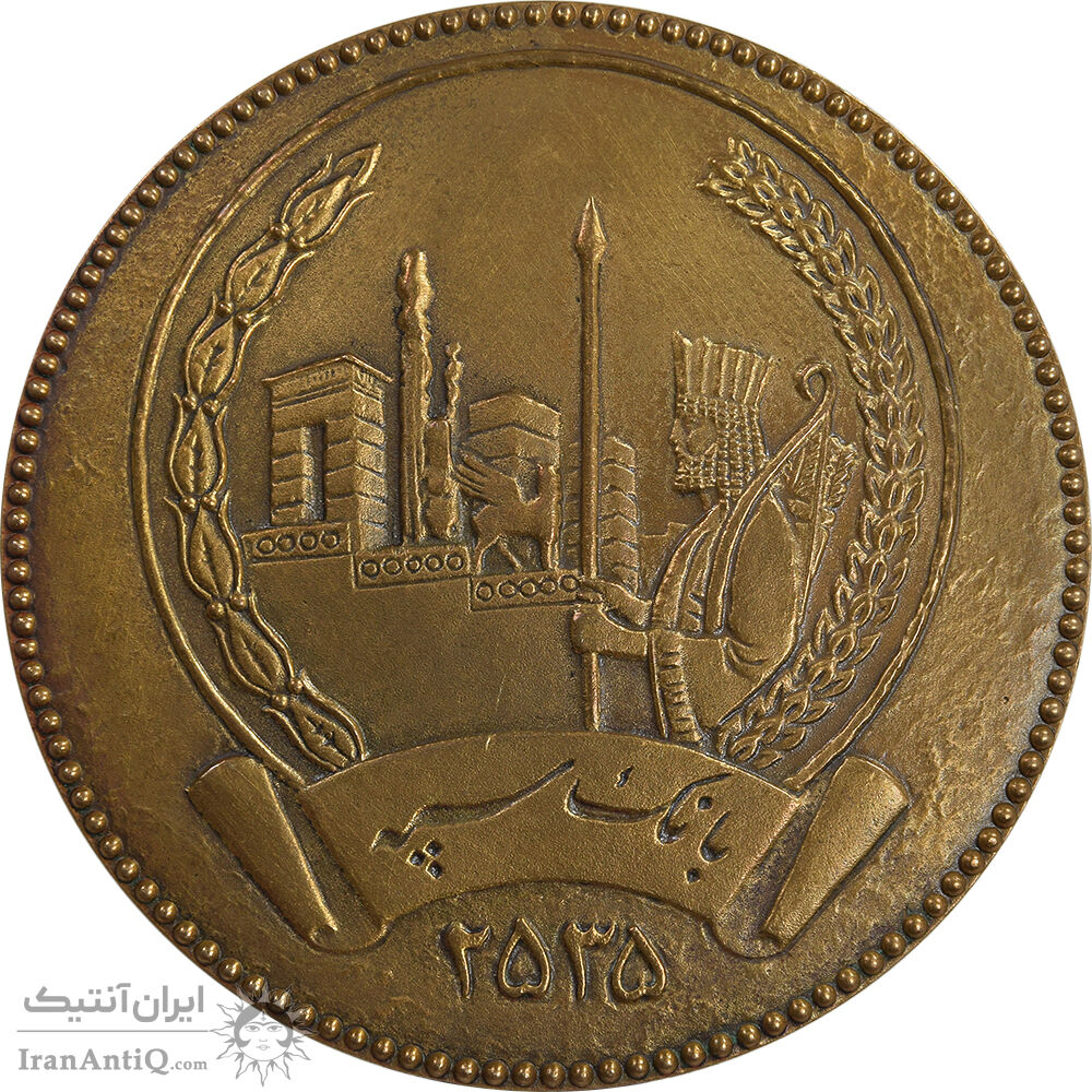 مدال برنز پنجاهمین سال شاهنشاهی پهلوی 2535 - بانک سپه با جعبه فابریک - AU58 - محمد رضا شاه