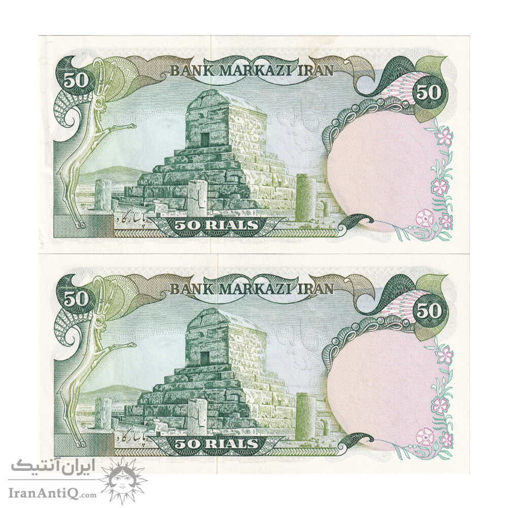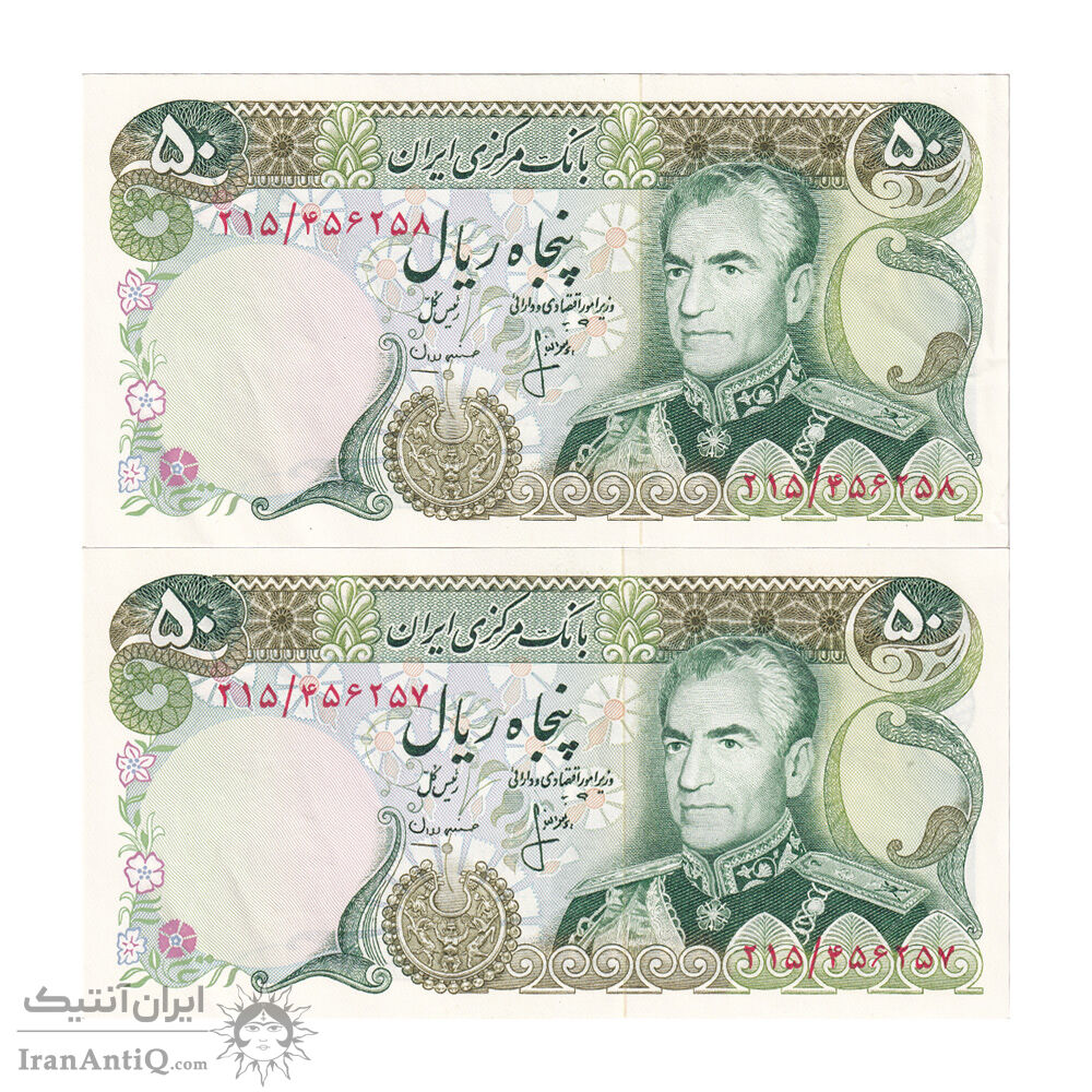 اسکناس 50 ریال (انصاری - مهران) - جفت - AU58 - محمد رضا شاه
