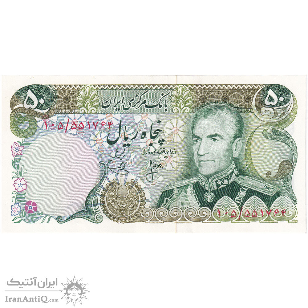 اسکناس 50 ریال (انصاری - یگانه) - تک - UNC62 - محمد رضا شاه