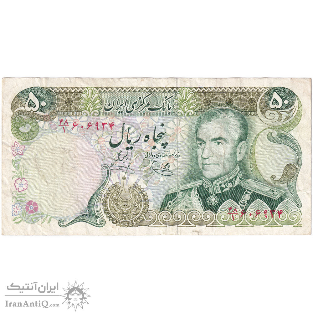 اسکناس 50 ریال (یگانه - خوش کیش) - تک - VF30 - محمد رضا شاه