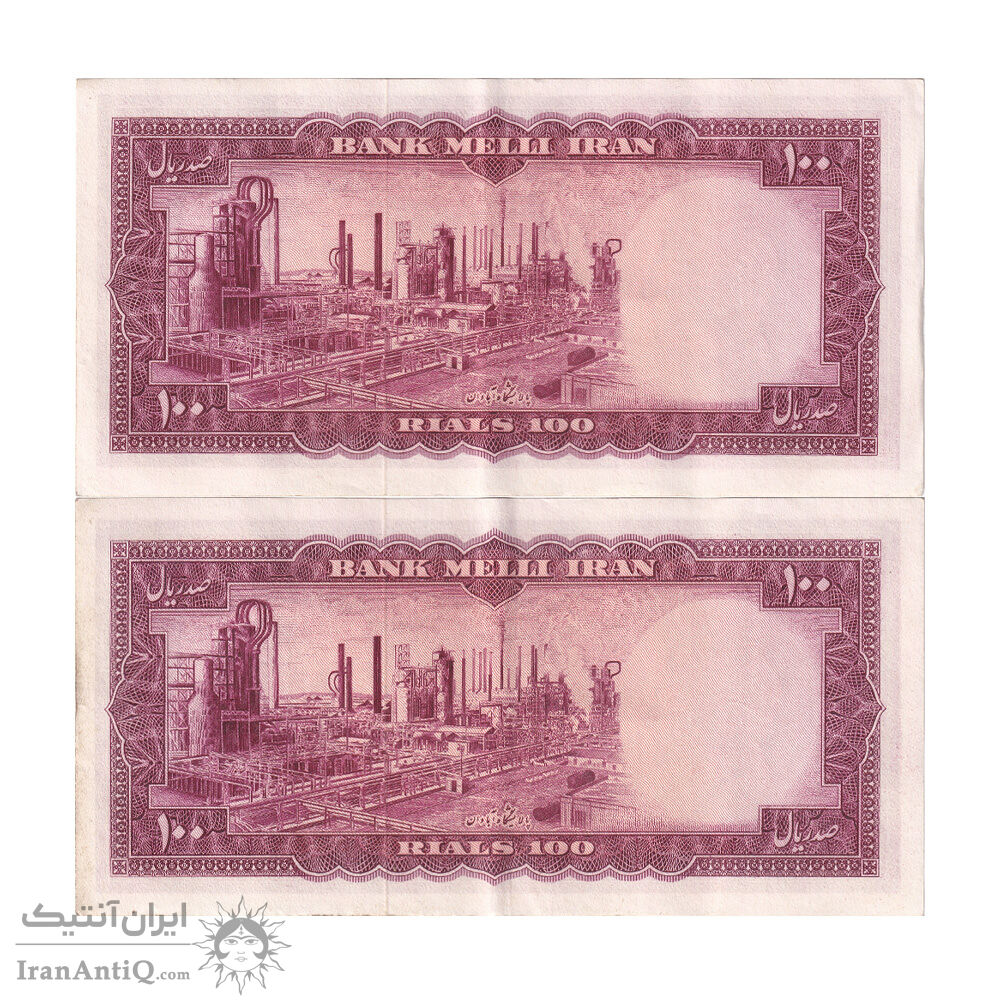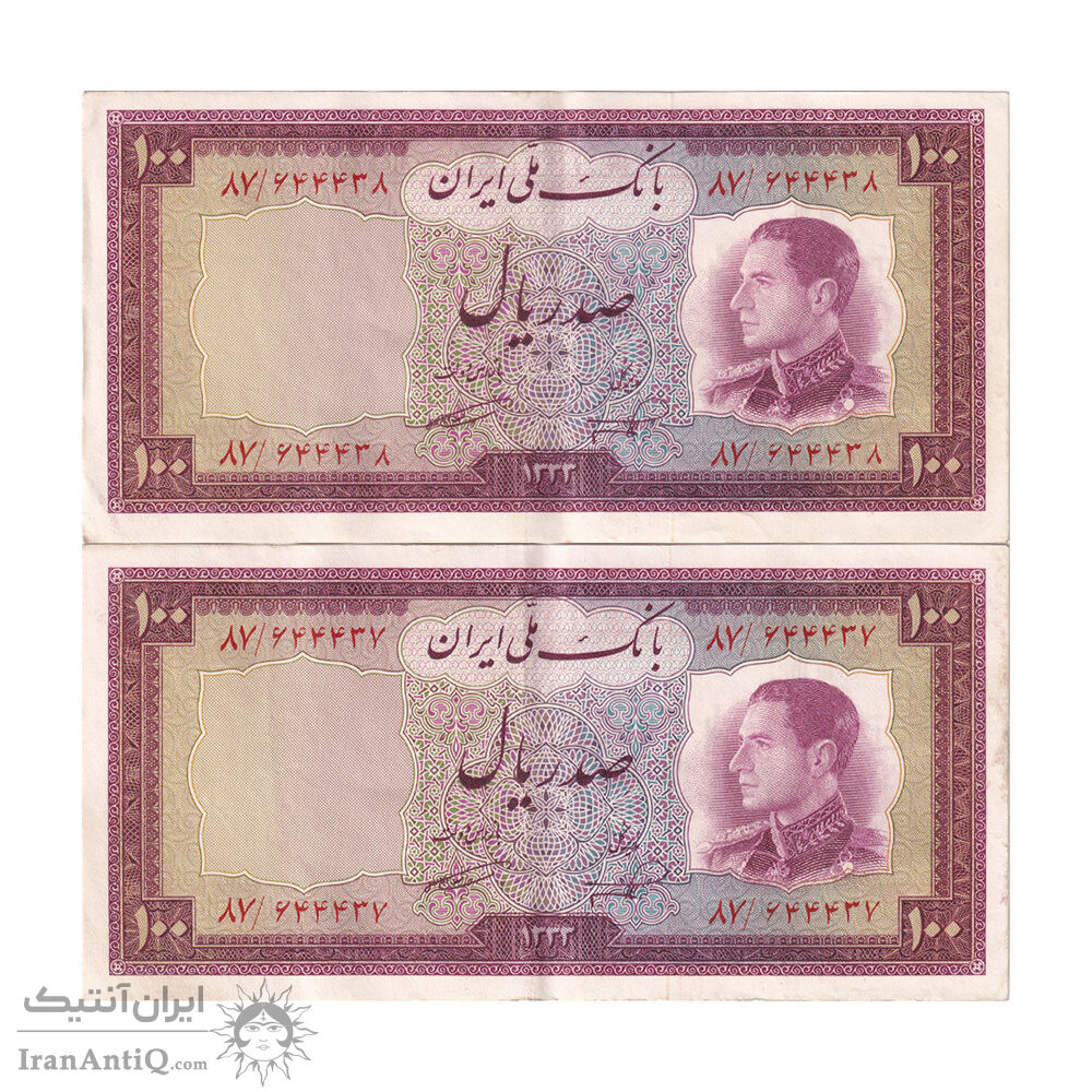 اسکناس 100 ریال 1333 - جفت - AU53 - محمد رضا شاه