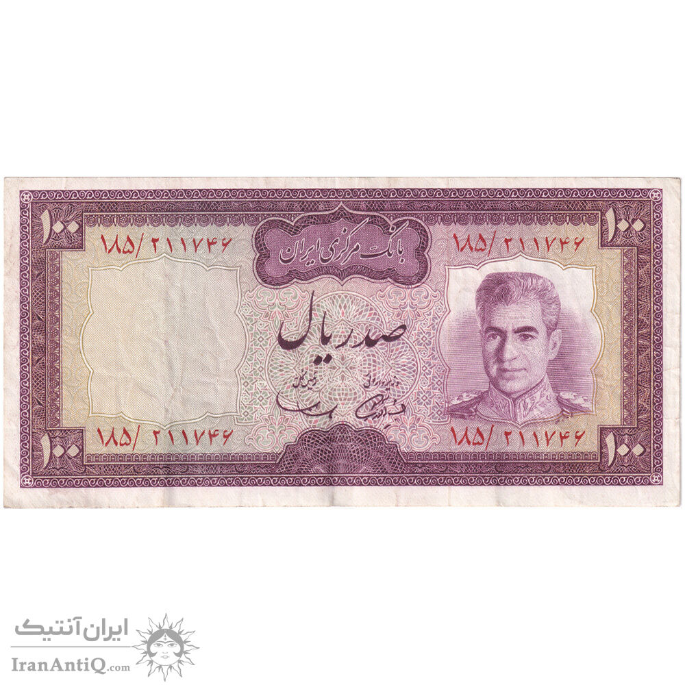 اسکناس 100 ریال (آموزگار - سمیعی) نوشته سیاه - تک - EF40 - محمد رضا شاه