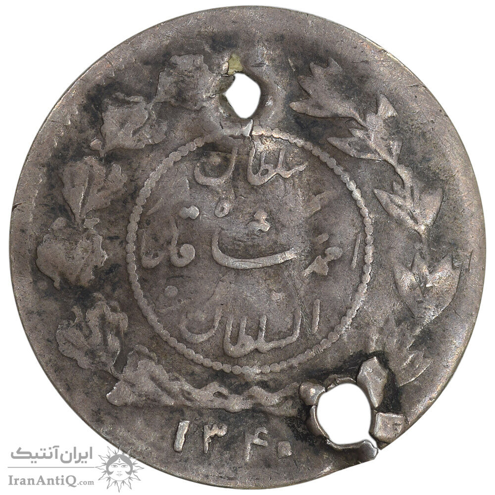 توجه: این سکه از دو جا سوراخ شده است.