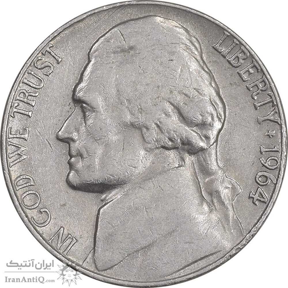 سکه 5 سنت 1964D جفرسون - EF45 - آمریکا