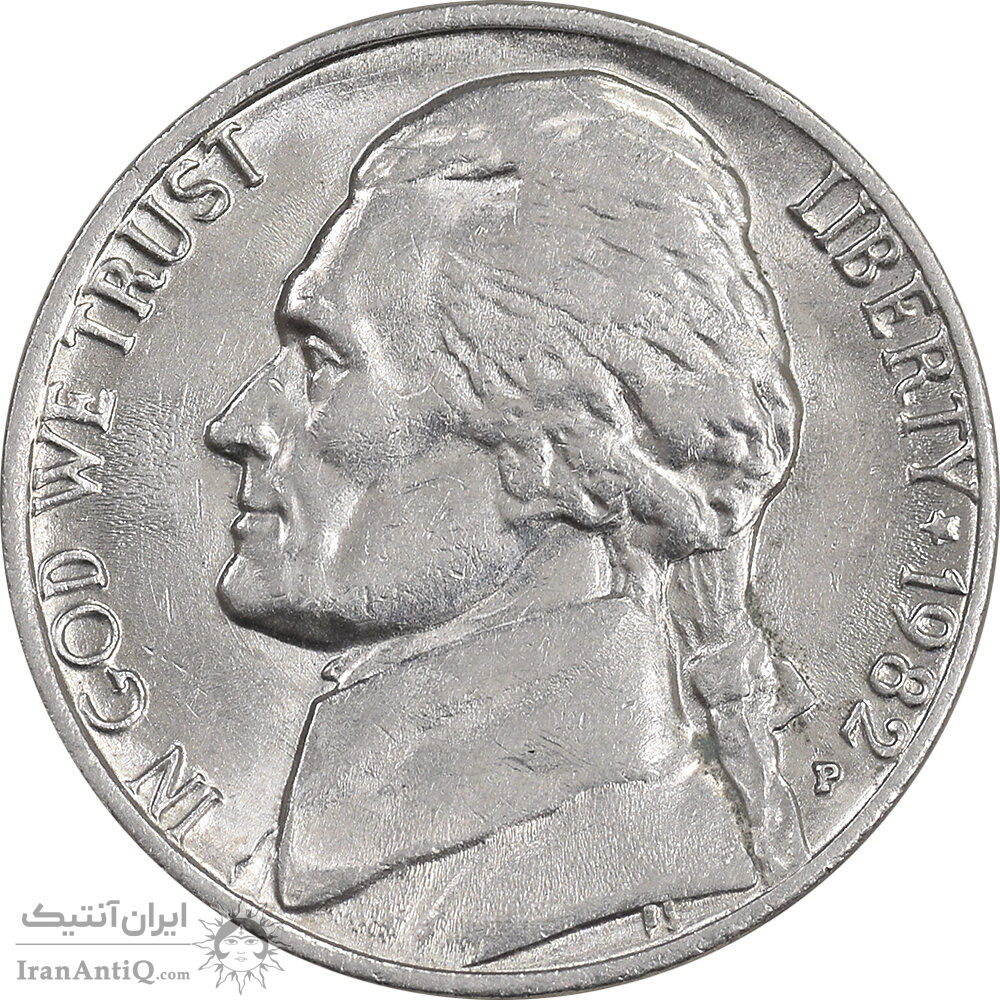 سکه 5 سنت 1982P جفرسون - AU58 - آمریکا