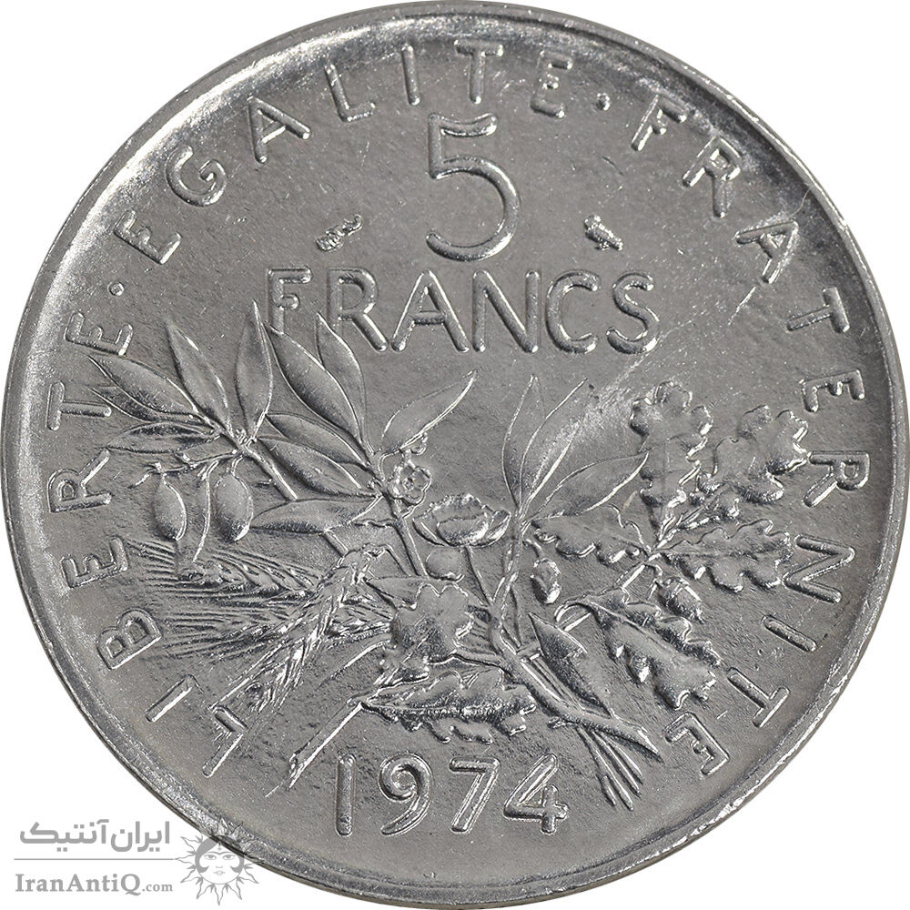 سکه 5 فرانک 1974 جمهوری کنونی - AU58 - فرانسه