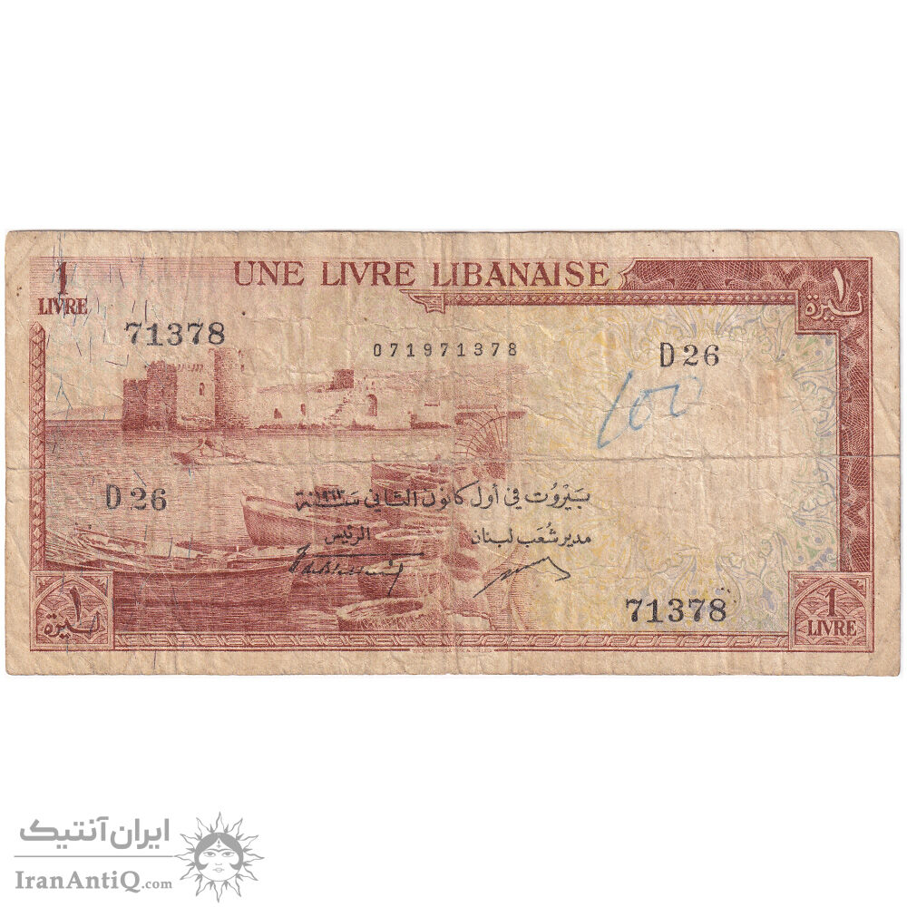 اسکناس 1 لیره 1963 جمهوری - تک - VF20 - لبنان