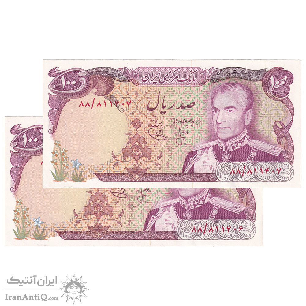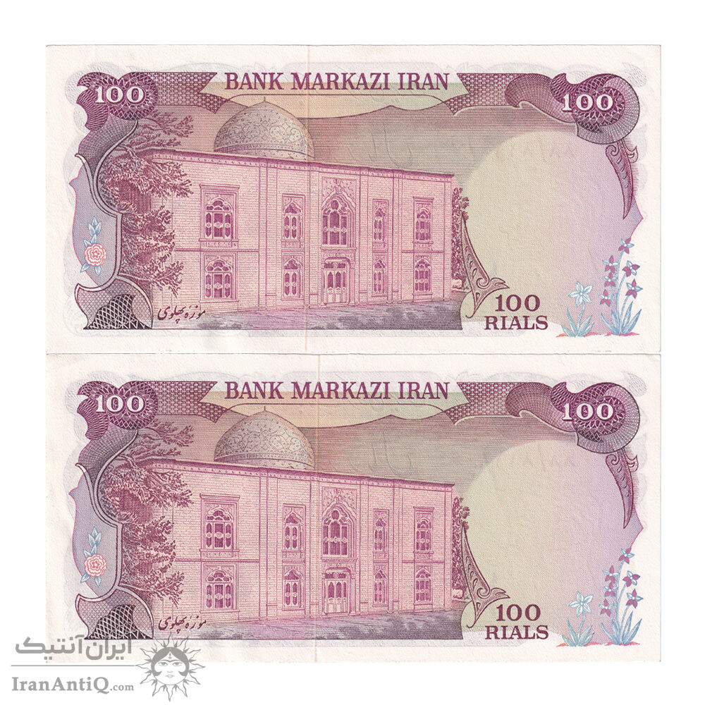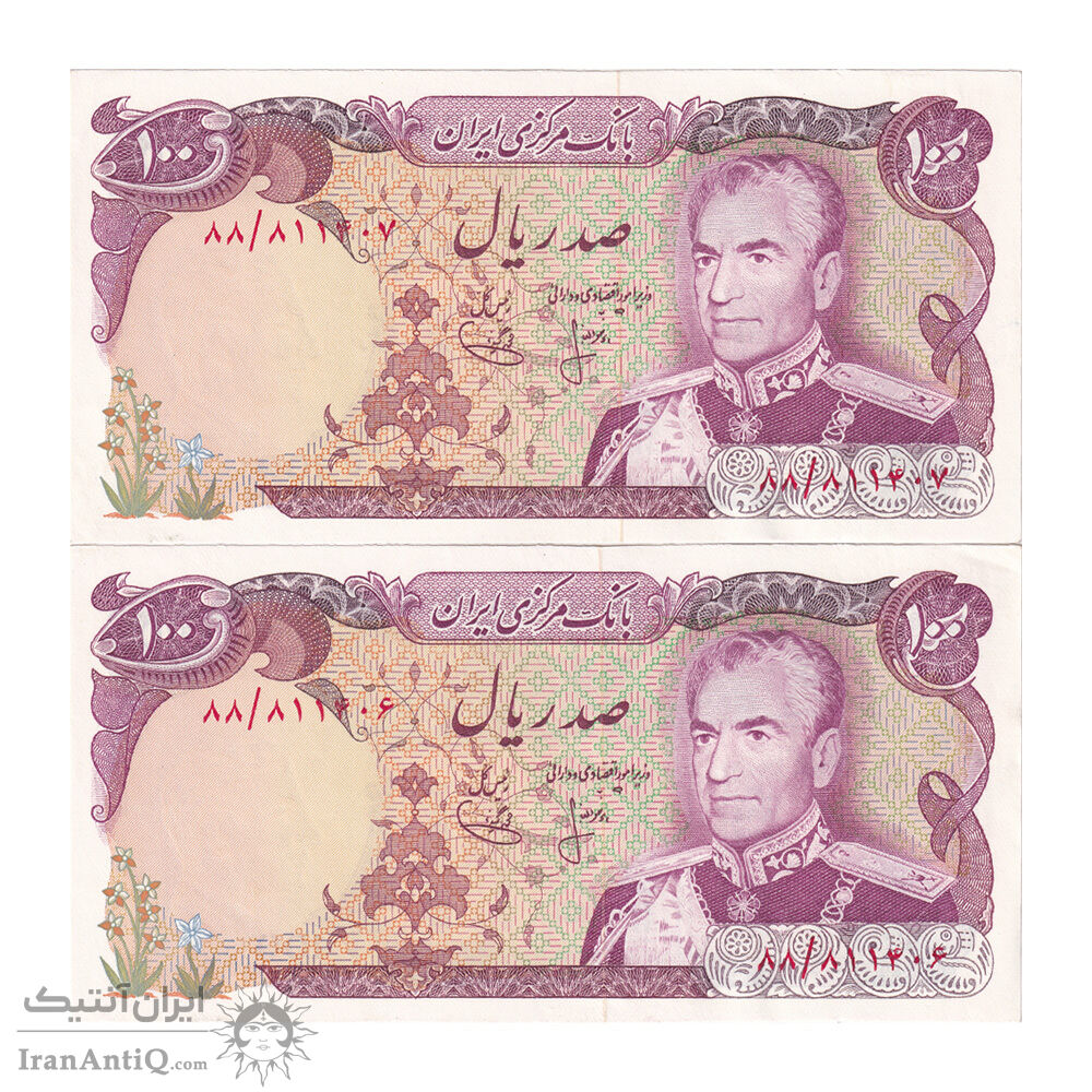 اسکناس 100 ریال (انصاری - یگانه) - جفت - AU58 - محمد رضا شاه