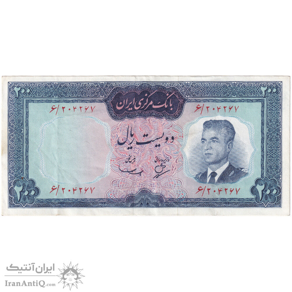 اسکناس 200 ریال (بهنیا - سمیعی) - تک - EF45 - محمد رضا شاه