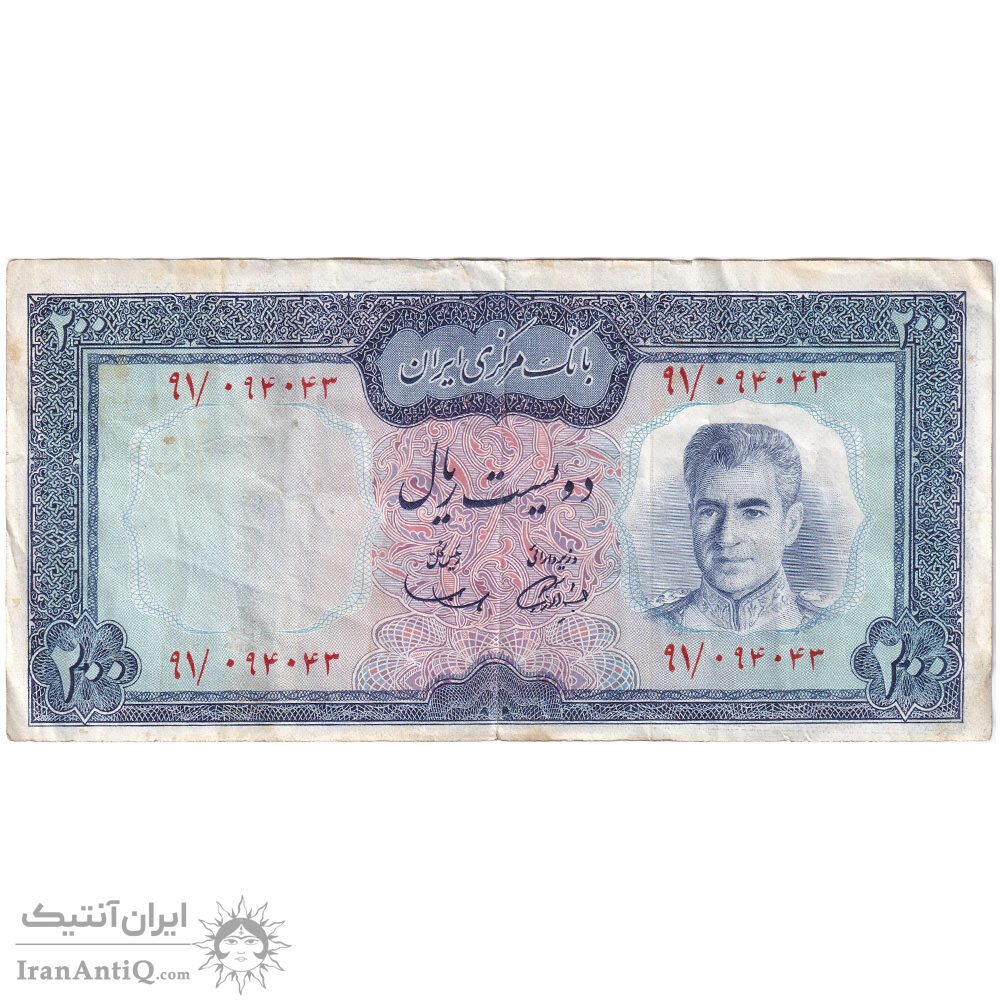 اسکناس 200 ریال (آموزگار - سمیعی) نوشته سیاه - تک - EF40 - محمد رضا شاه