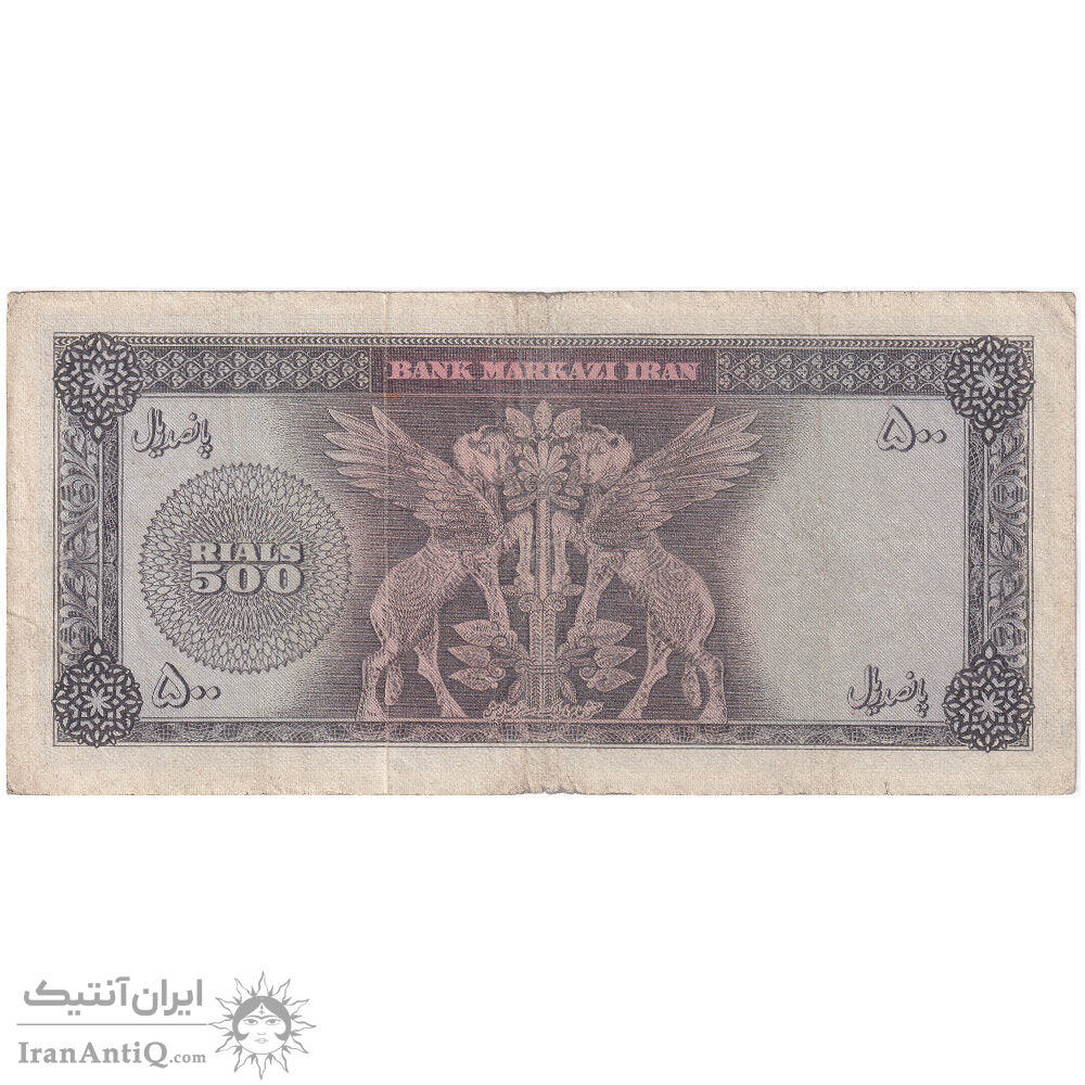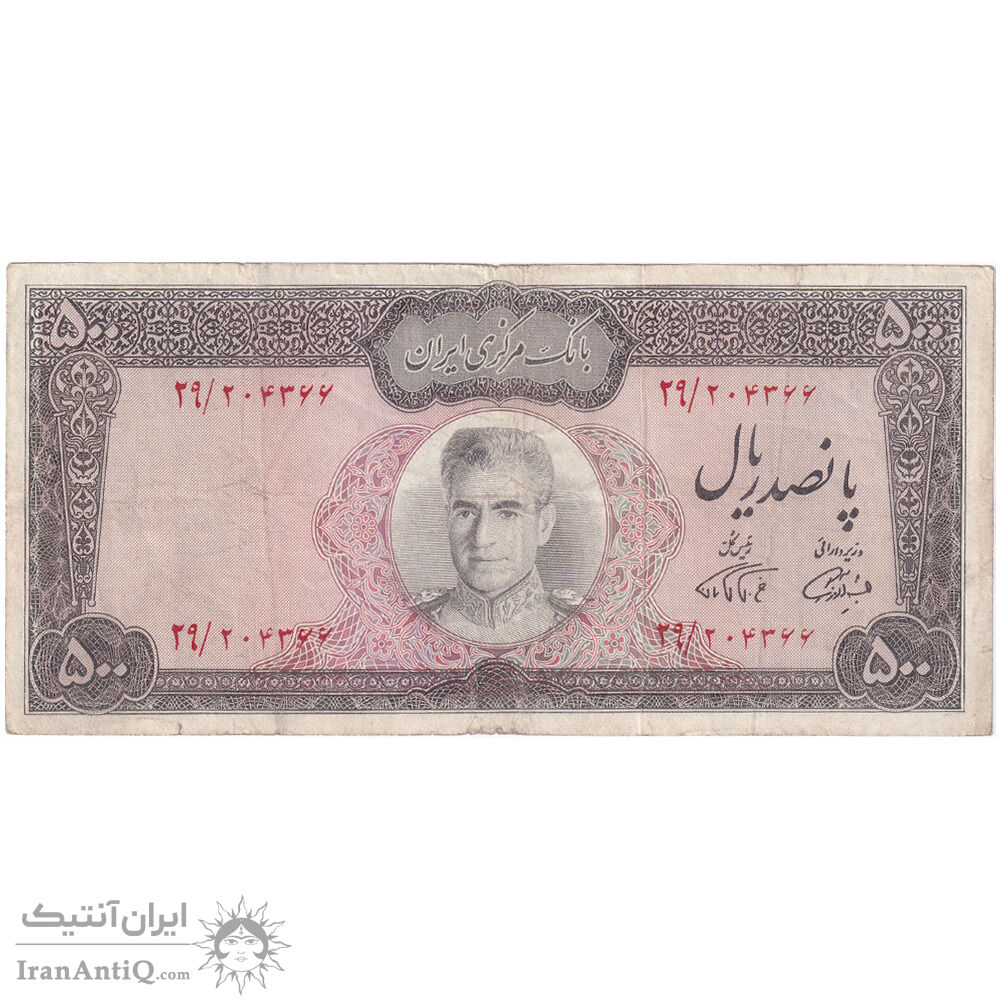 اسکناس 500 ریال (آموزگار - فرمان فرماییان) نوشته سیاه - تک - VF35 - محمد رضا شاه